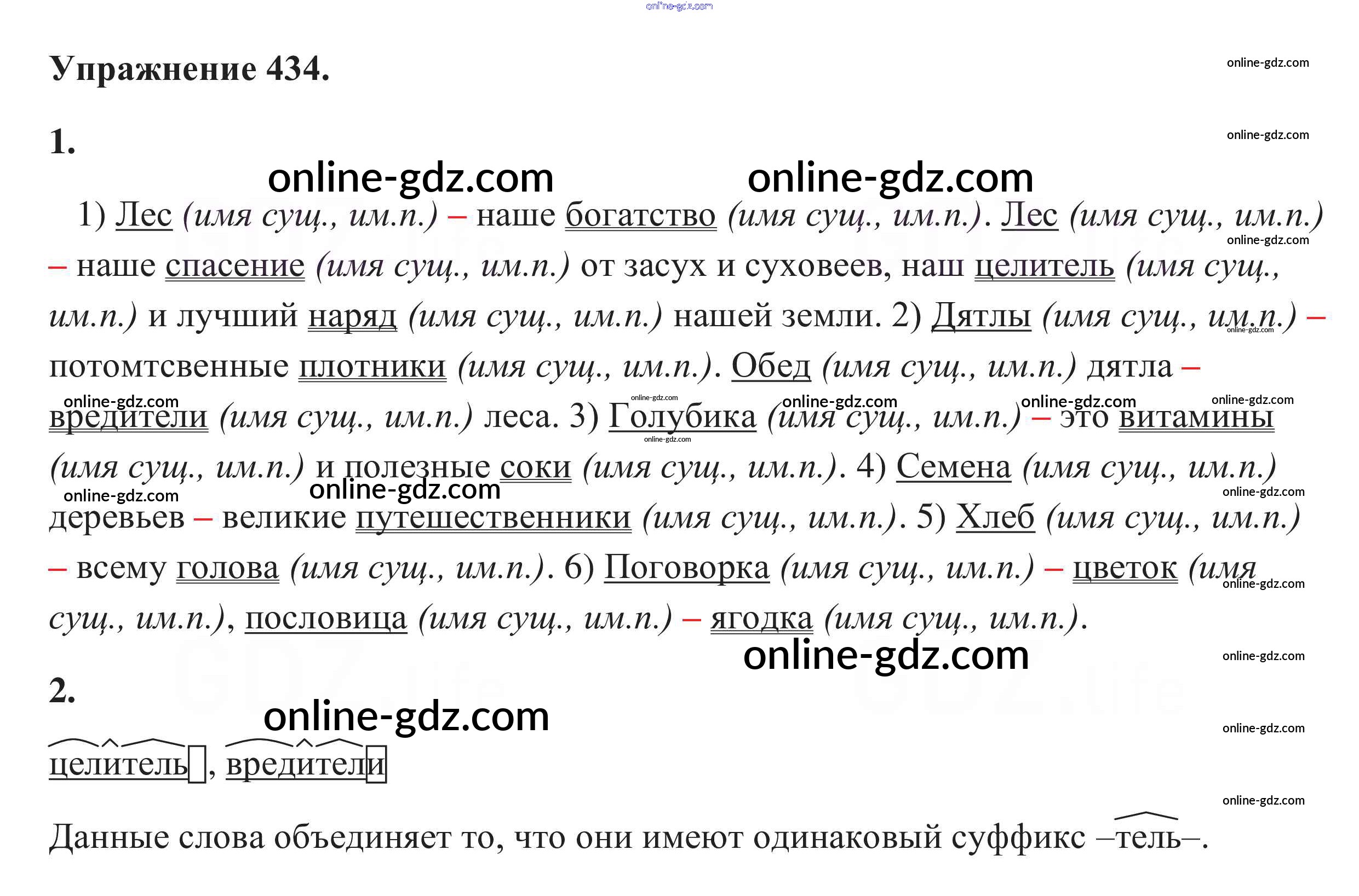 Готовые домашние задания по Русскому языку за 5 класс Учебник Разумовская, Львова 2014 - Упражнения 434