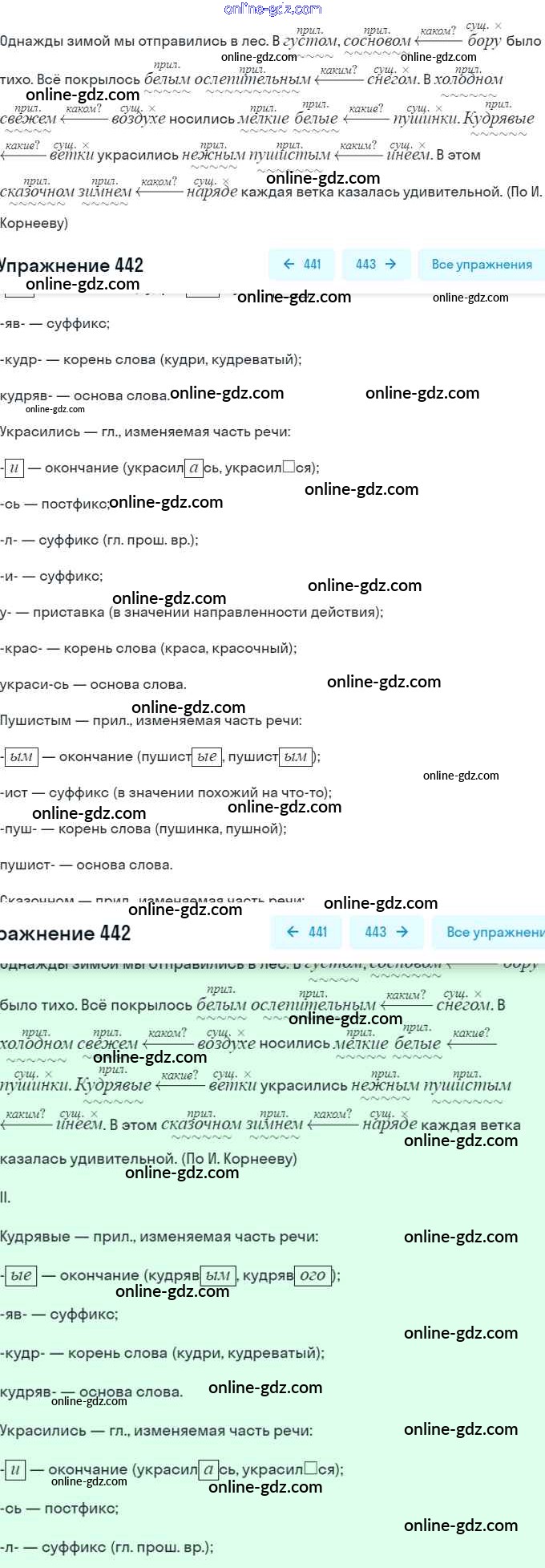 Готовые домашние задания по Русскому языку за 5 класс Учебник Разумовская, Львова 2014 - Упражнения 442