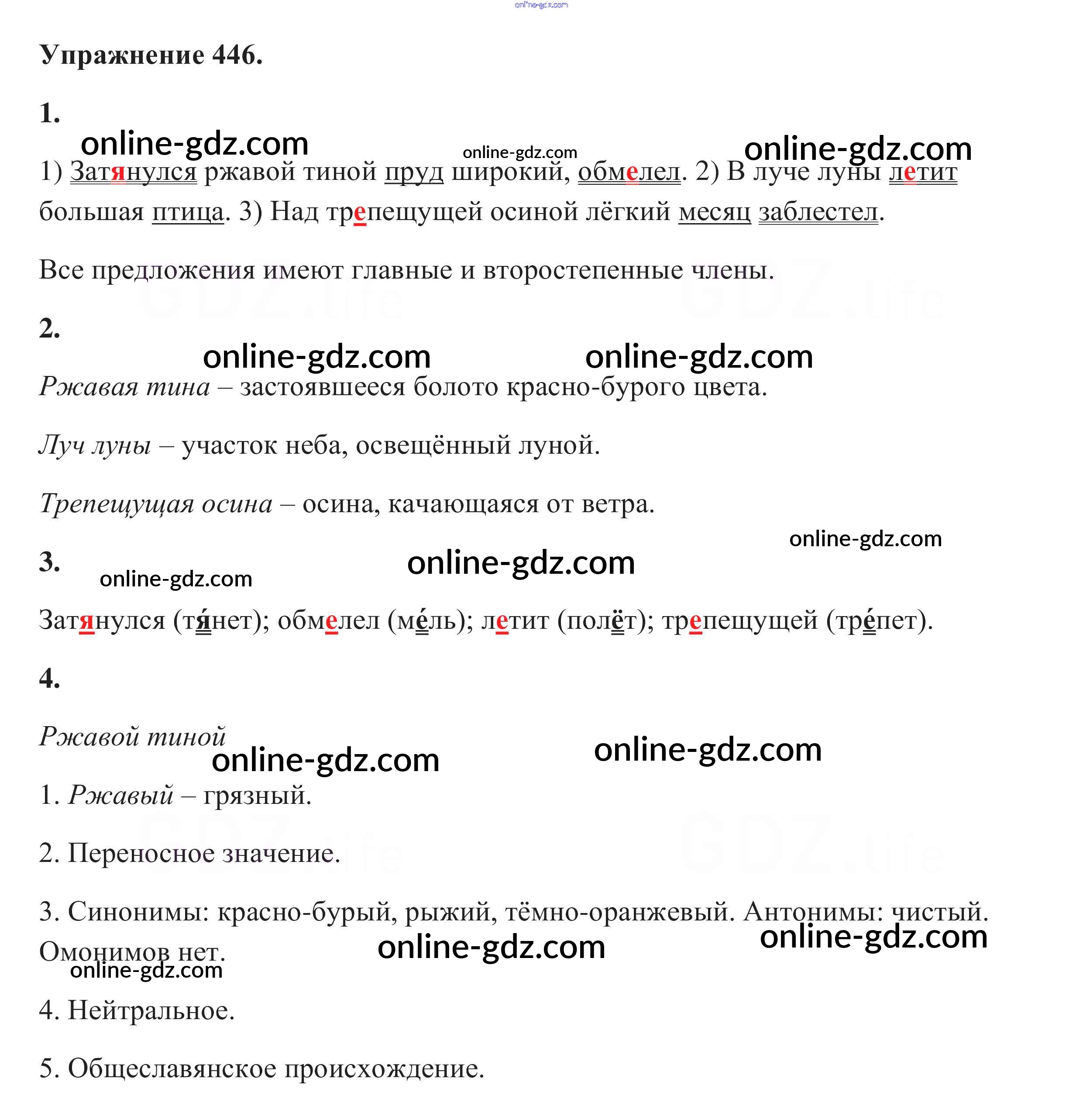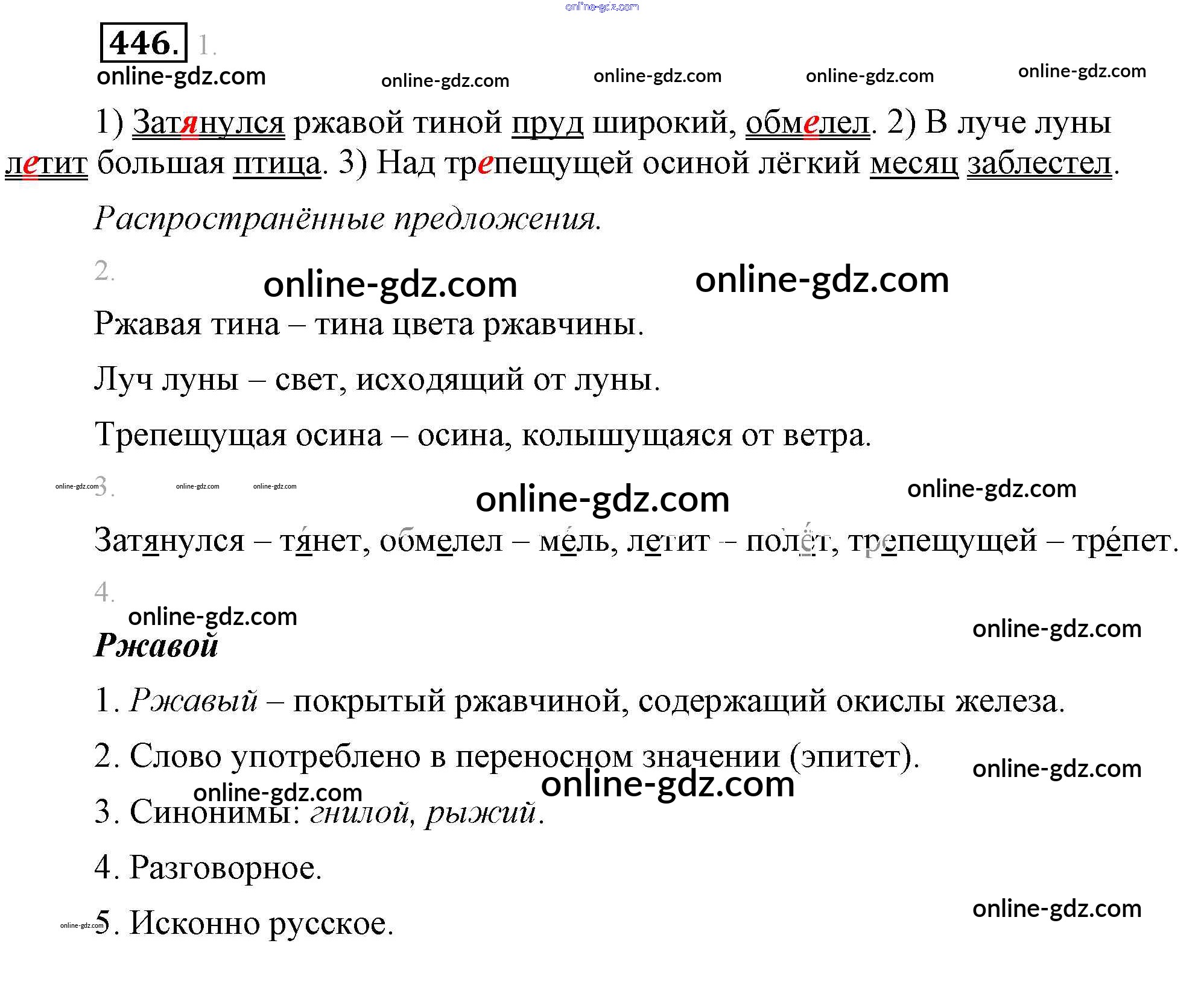 Готовые домашние задания по Русскому языку за 5 класс Учебник Разумовская, Львова 2014 - Упражнения 446