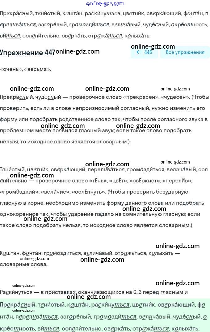Готовые домашние задания по Русскому языку за 5 класс Учебник Разумовская, Львова 2014 - Упражнения 447