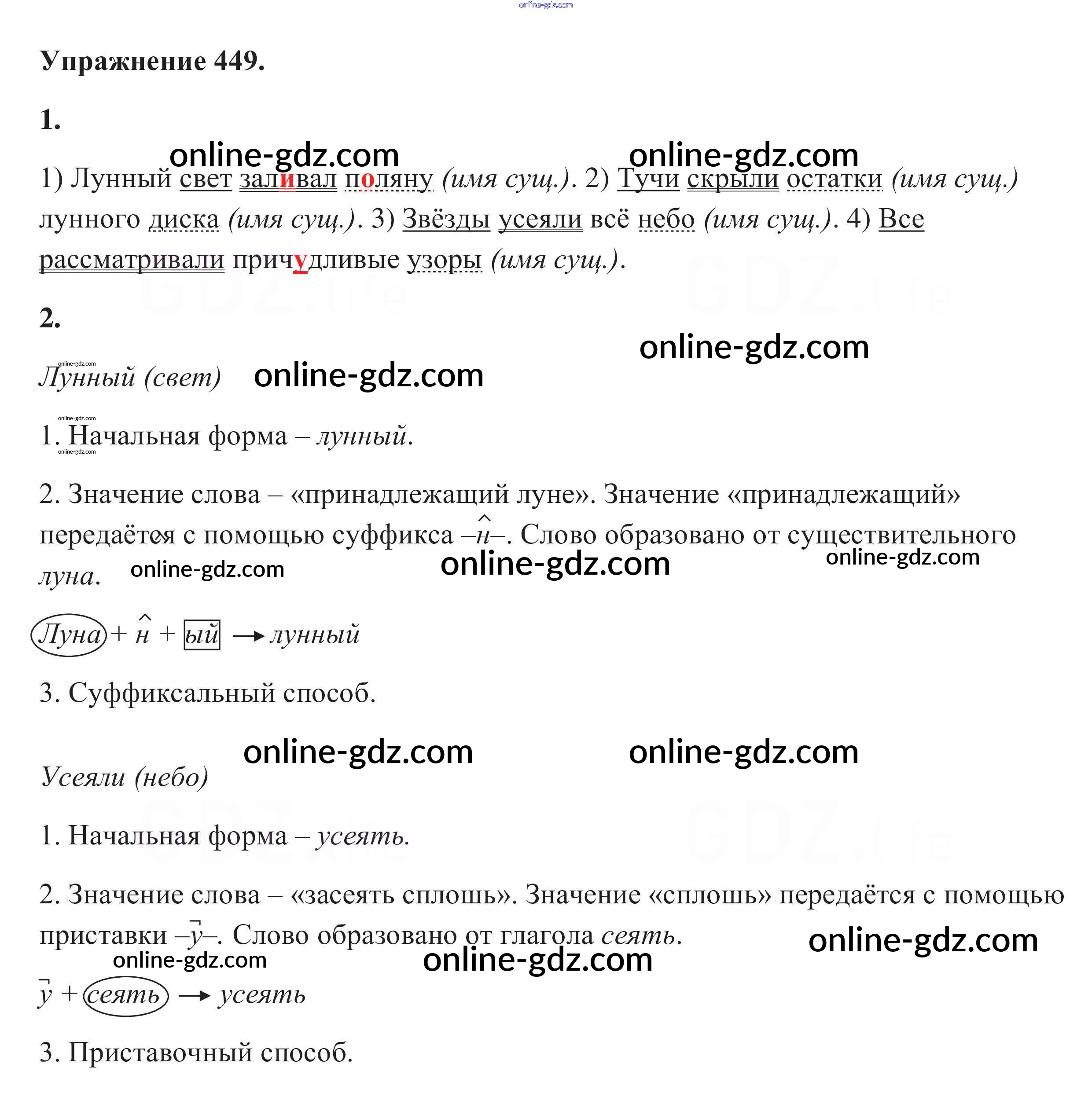 Готовые домашние задания по Русскому языку за 5 класс Учебник Разумовская, Львова 2014 - Упражнения 449