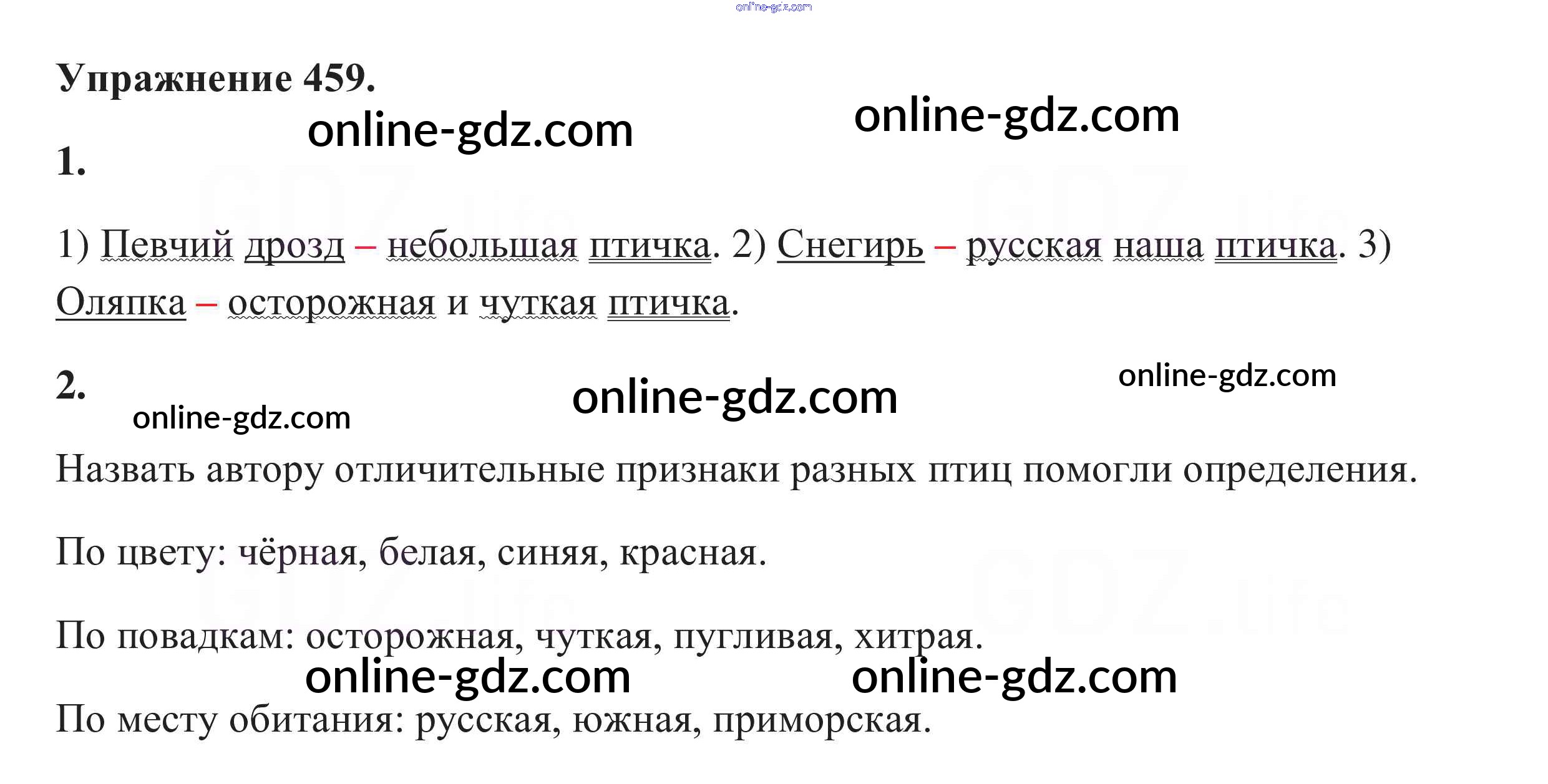 Готовые домашние задания по Русскому языку за 5 класс Учебник Разумовская, Львова 2014 - Упражнения 459