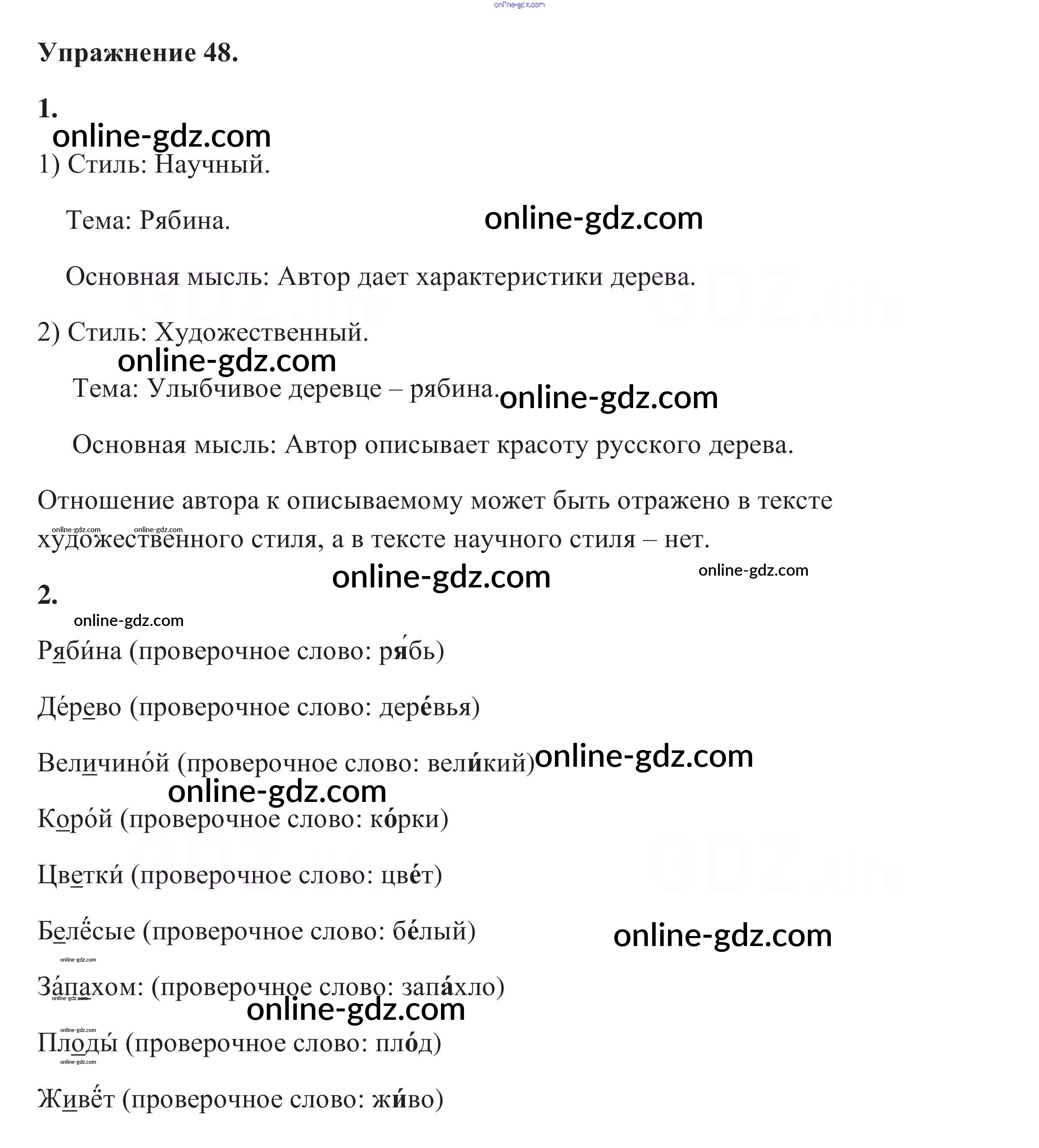 Готовые домашние задания по Русскому языку за 5 класс Учебник Разумовская, Львова 2014 - Упражнения 48