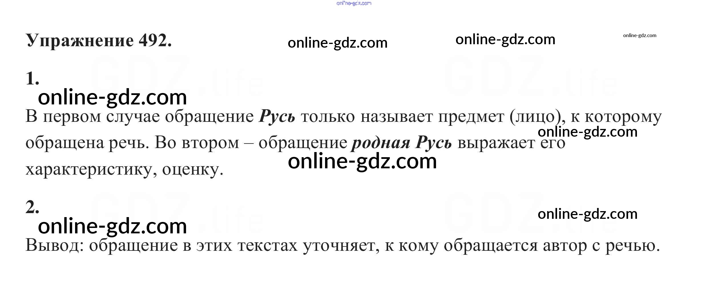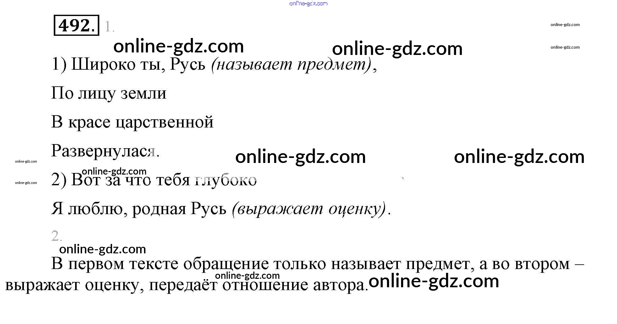 Готовые домашние задания по Русскому языку за 5 класс Учебник Разумовская, Львова 2014 - Упражнения 492