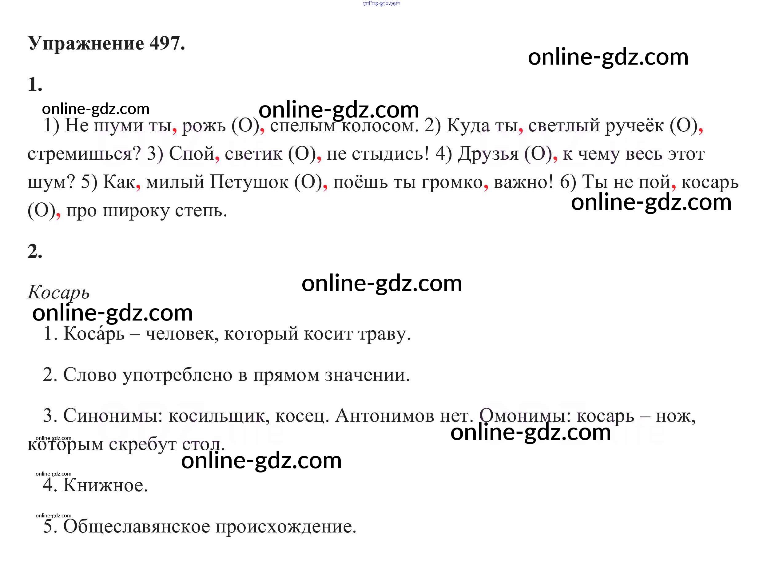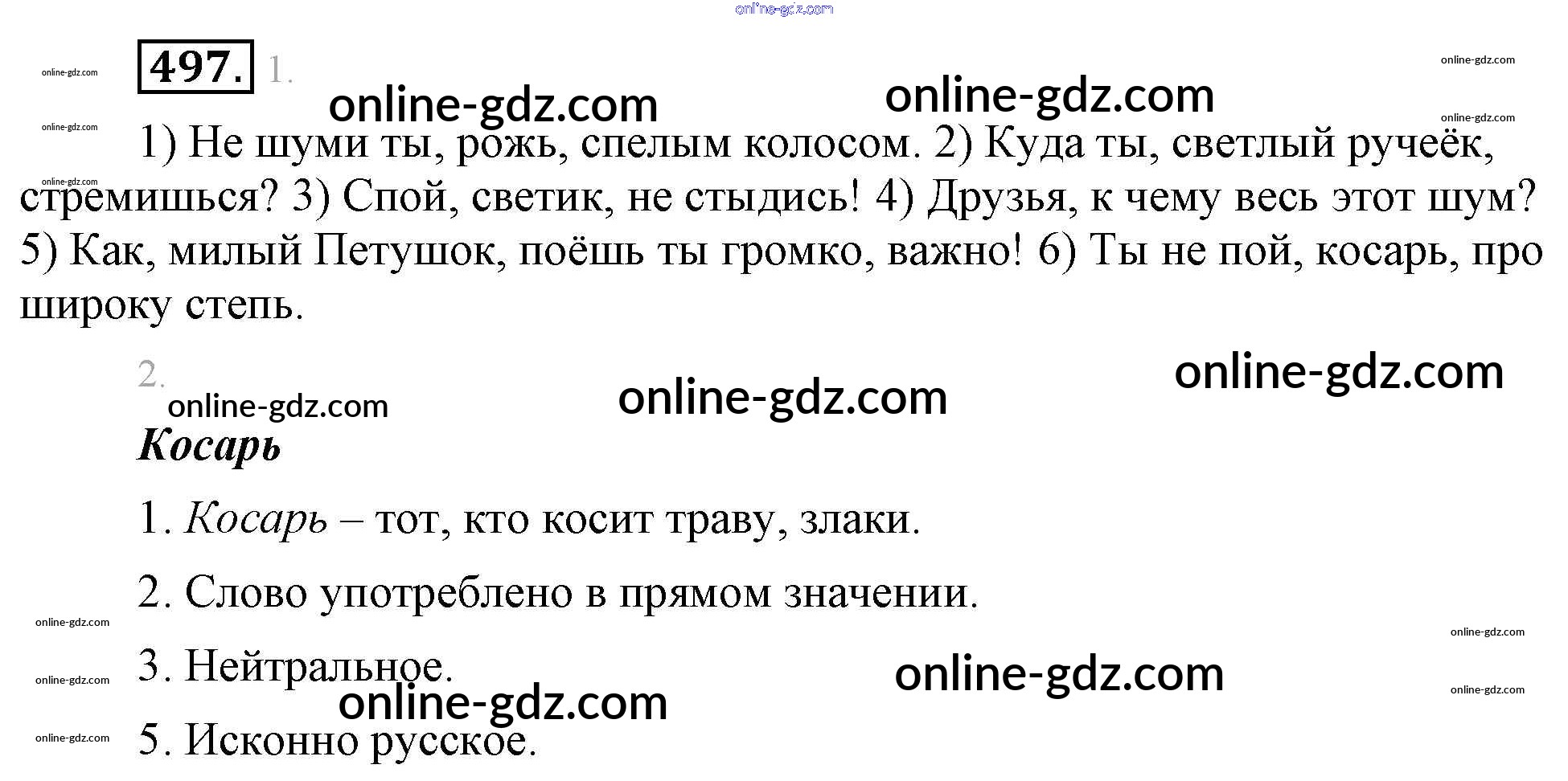 Готовые домашние задания по Русскому языку за 5 класс Учебник Разумовская, Львова 2014 - Упражнения 497