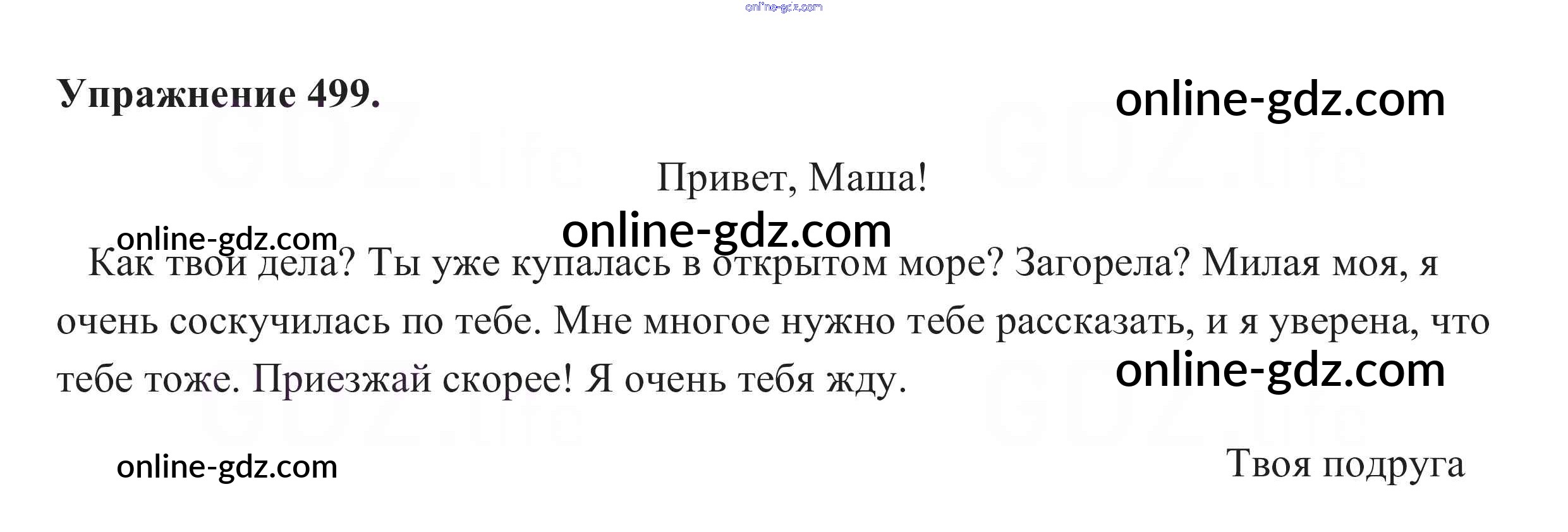 Готовые домашние задания по Русскому языку за 5 класс Учебник Разумовская, Львова 2014 - Упражнения 499