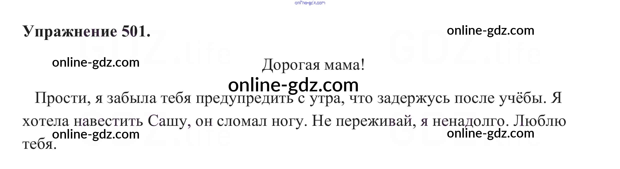 Готовые домашние задания по Русскому языку за 5 класс Учебник Разумовская, Львова 2014 - Упражнения 501