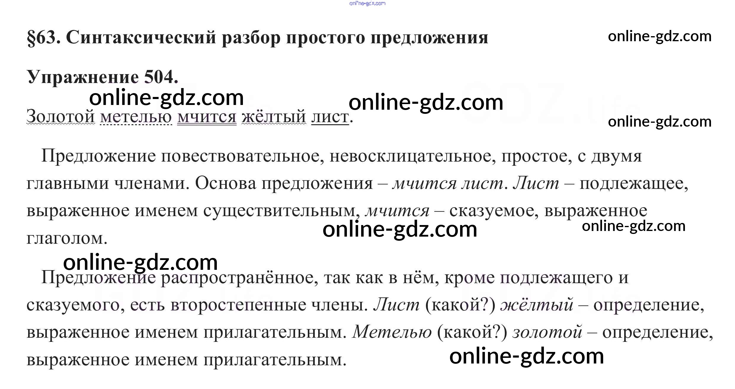 Готовые домашние задания по Русскому языку за 5 класс Учебник Разумовская, Львова 2014 - Упражнения 504
