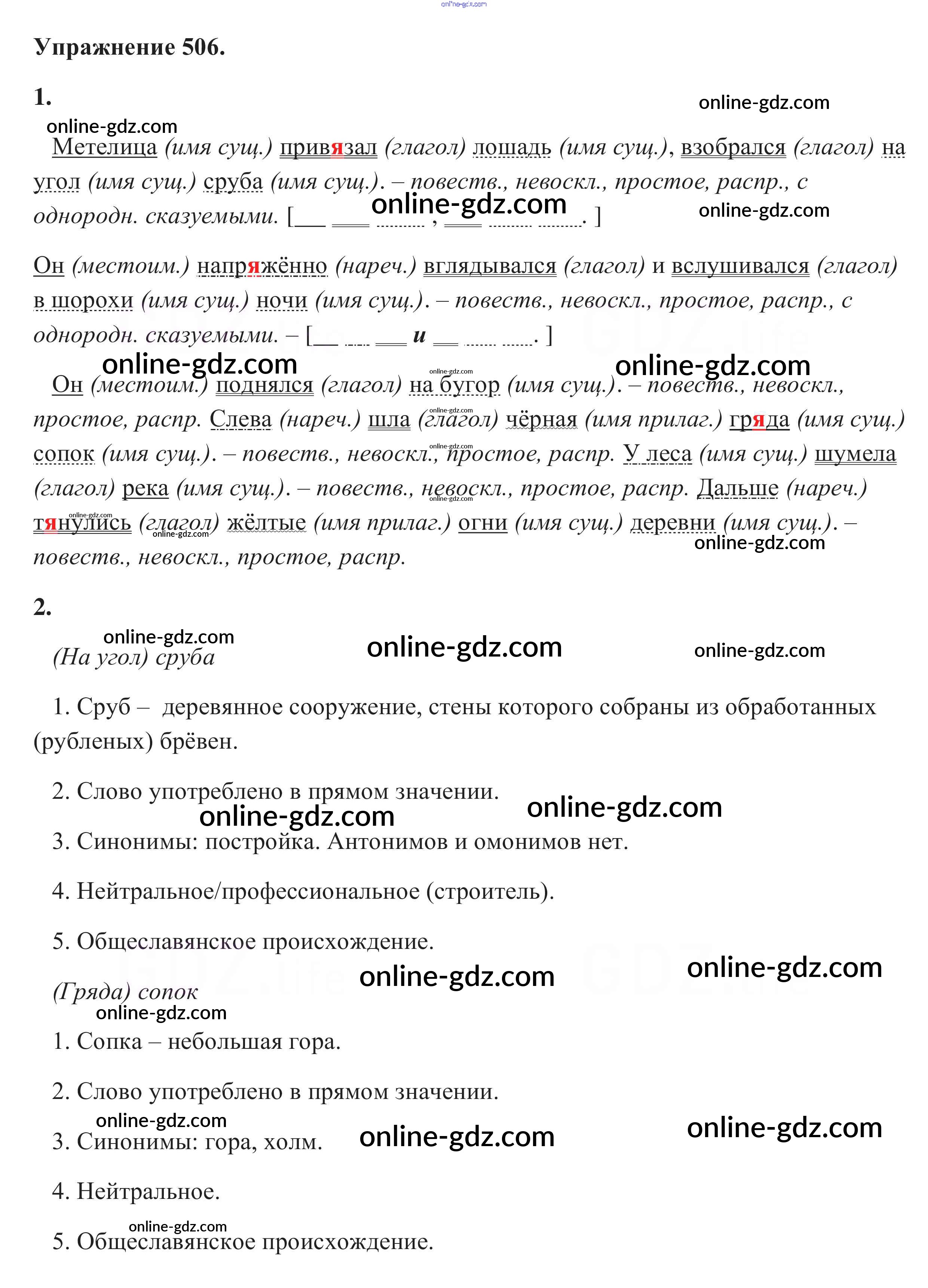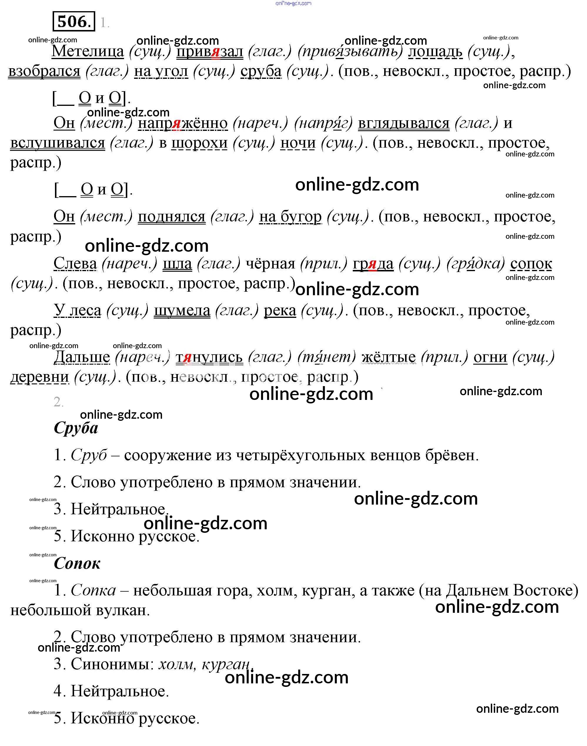 Готовые домашние задания по Русскому языку за 5 класс Учебник Разумовская, Львова 2014 - Упражнения 506