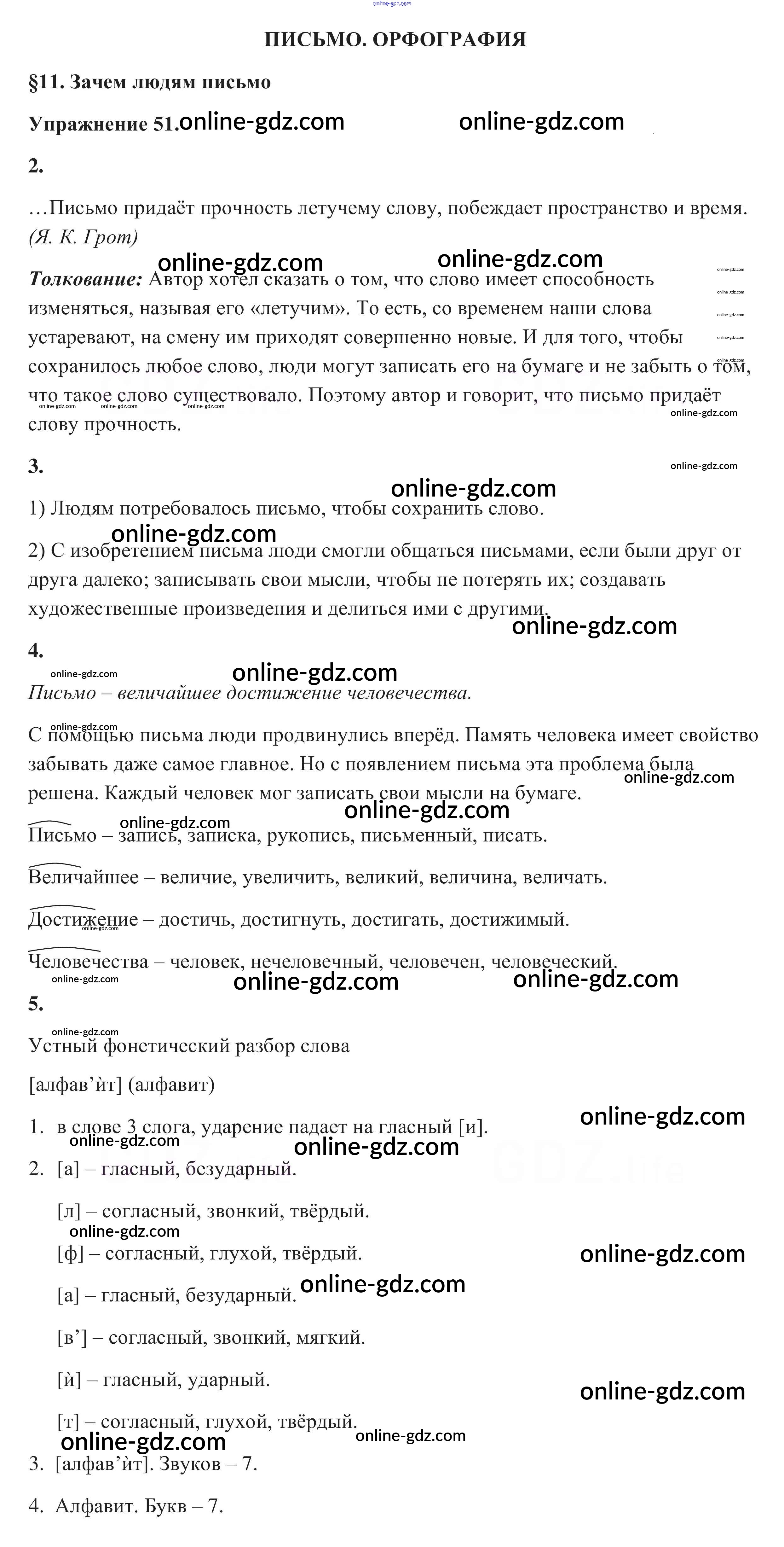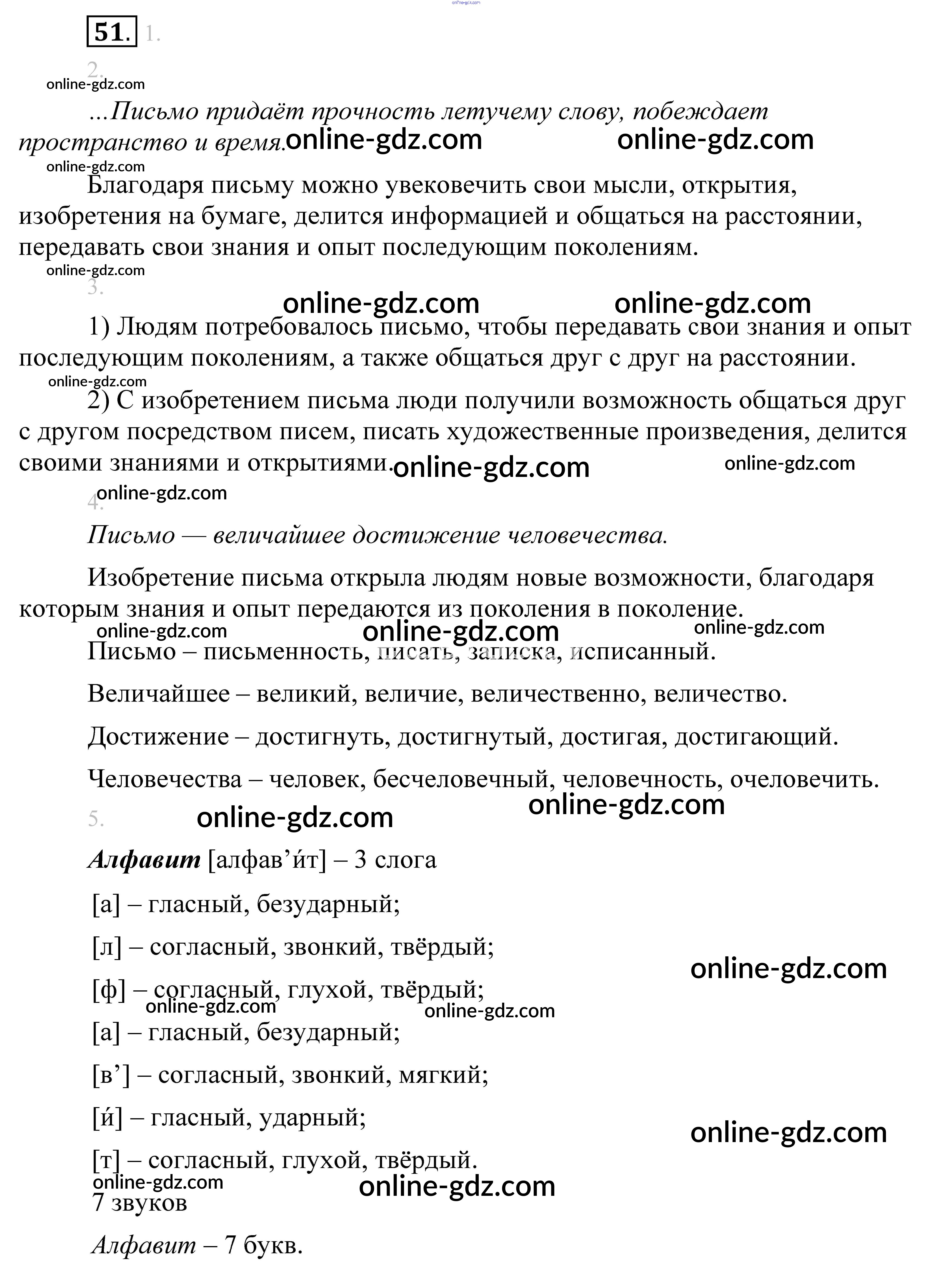 Готовые домашние задания по Русскому языку за 5 класс Учебник Разумовская, Львова 2014 - Упражнения 51
