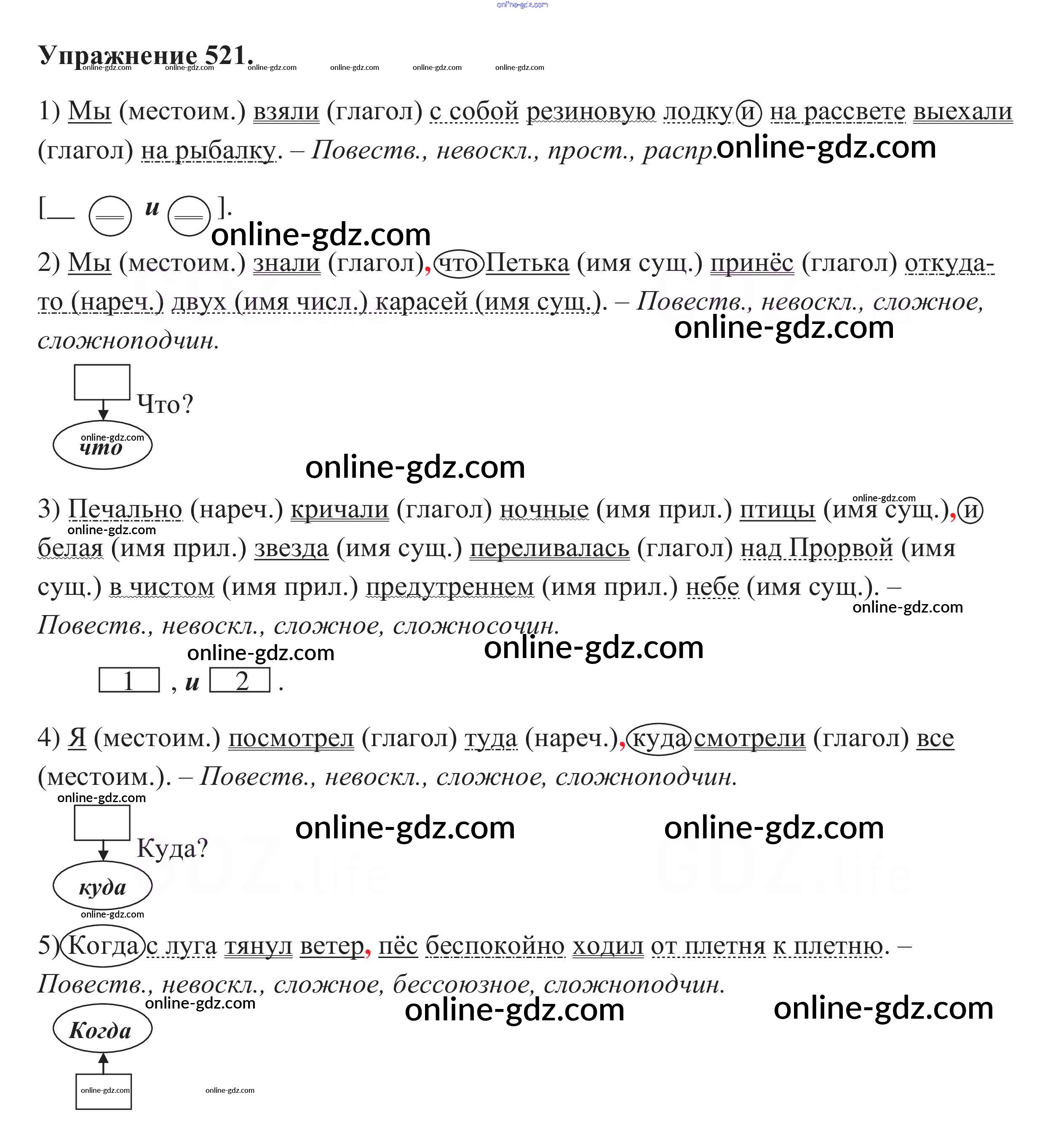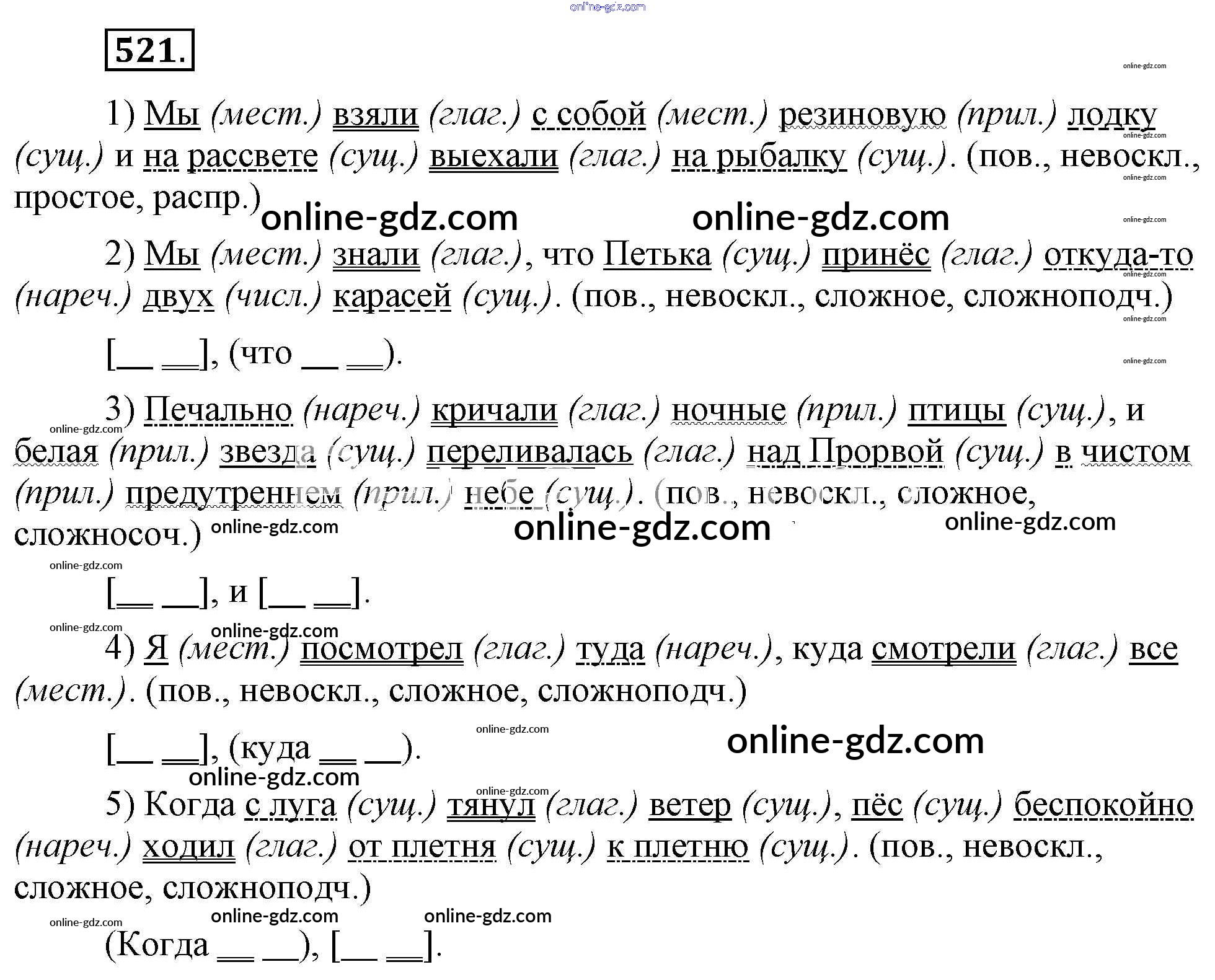Готовые домашние задания по Русскому языку за 5 класс Учебник Разумовская, Львова 2014 - Упражнения 521
