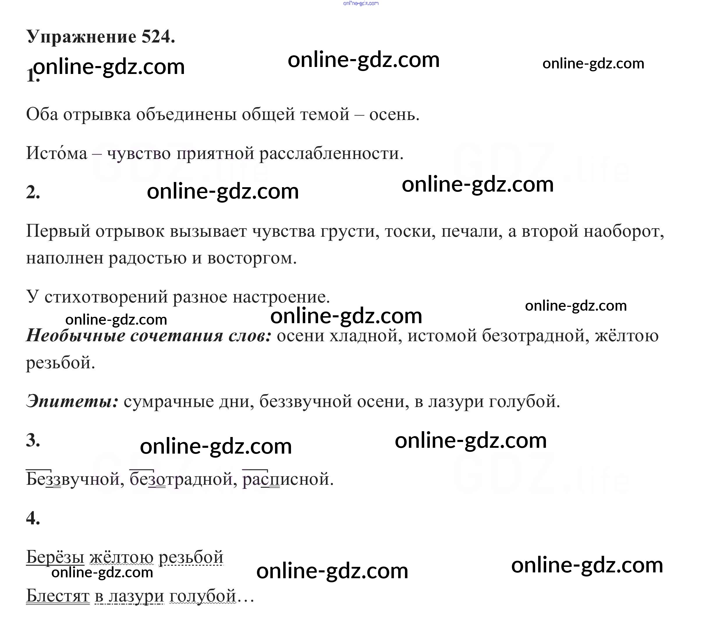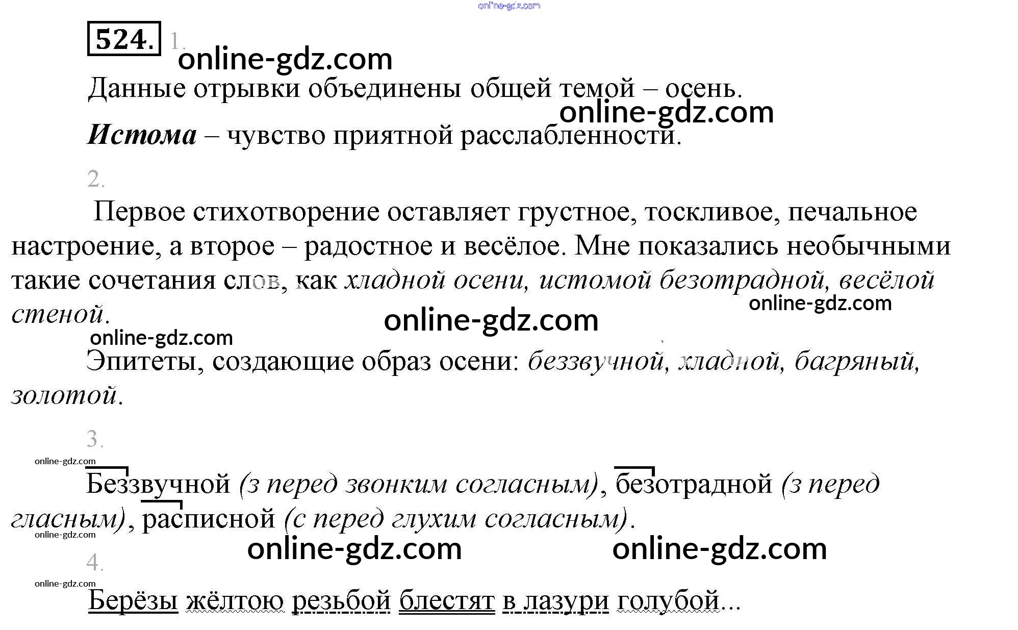 Готовые домашние задания по Русскому языку за 5 класс Учебник Разумовская, Львова 2014 - Упражнения 524