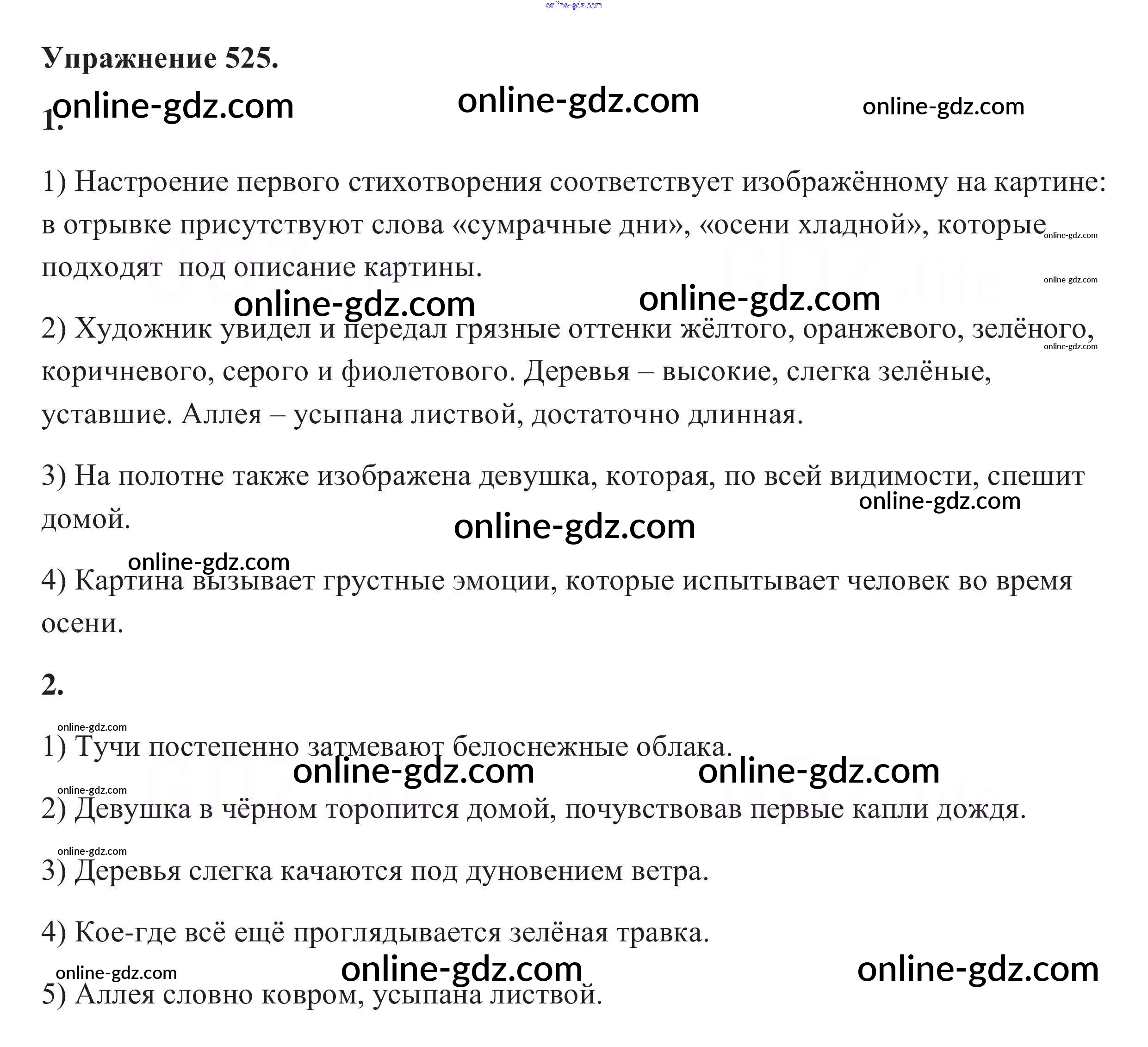 Готовые домашние задания по Русскому языку за 5 класс Учебник Разумовская, Львова 2014 - Упражнения 525