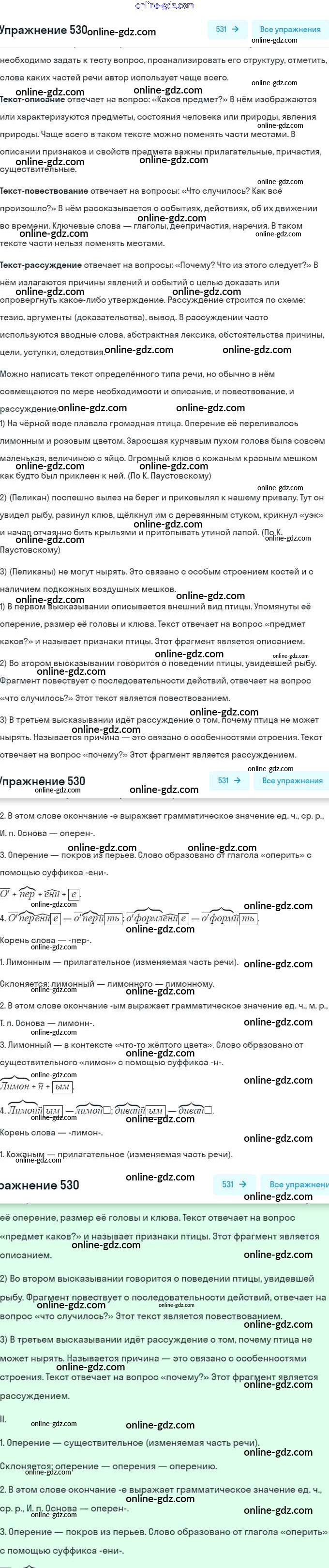 Готовые домашние задания по Русскому языку за 5 класс Учебник Разумовская, Львова 2014 - Упражнения 530