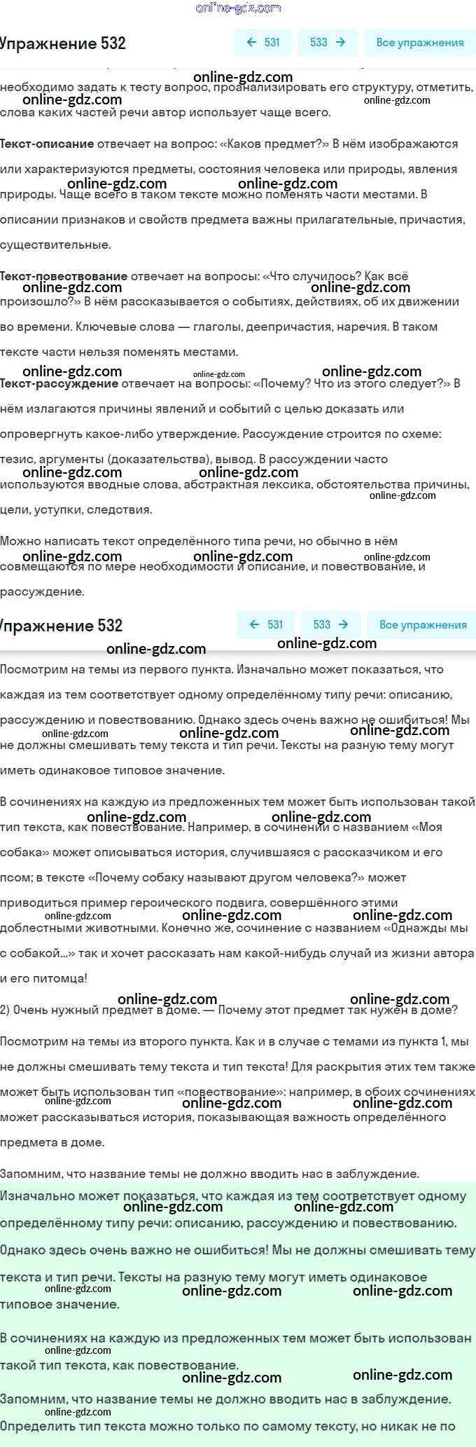 Готовые домашние задания по Русскому языку за 5 класс Учебник Разумовская, Львова 2014 - Упражнения 532