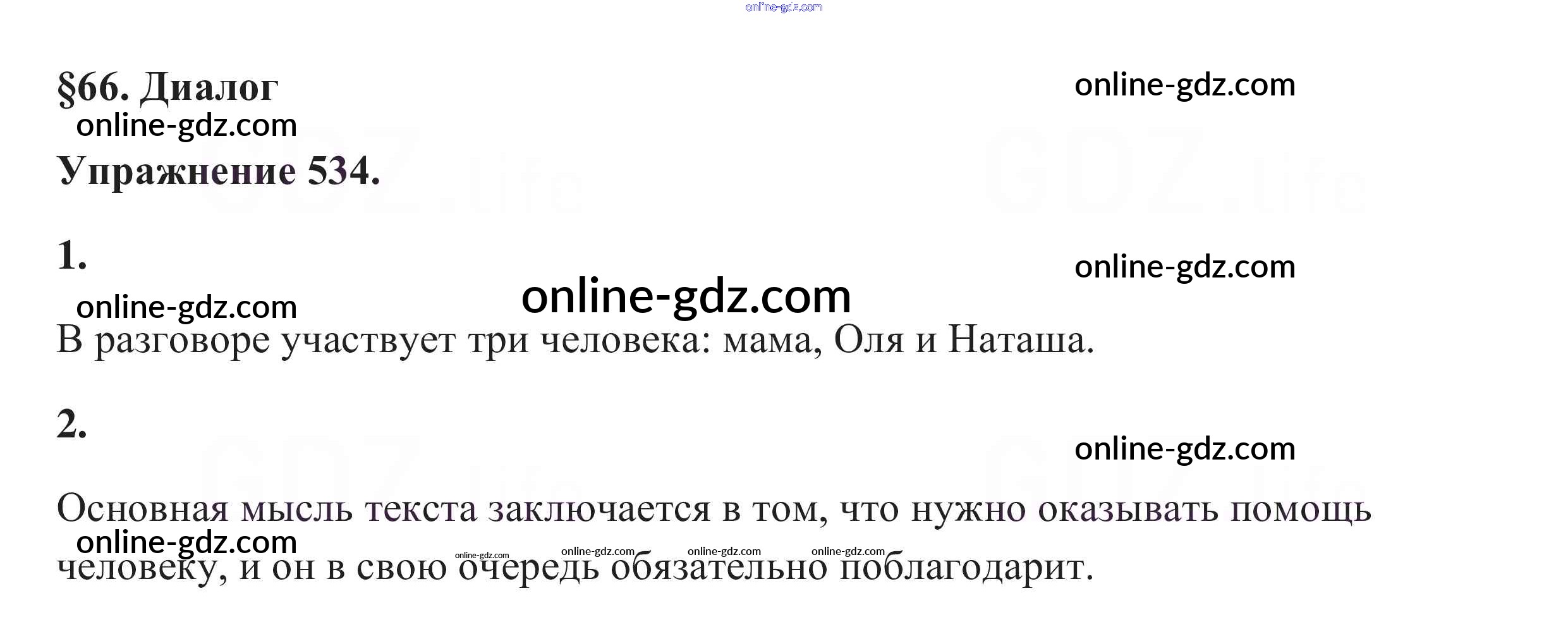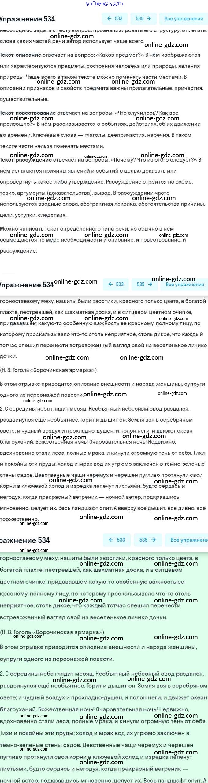 Готовые домашние задания по Русскому языку за 5 класс Учебник Разумовская, Львова 2014 - Упражнения 534