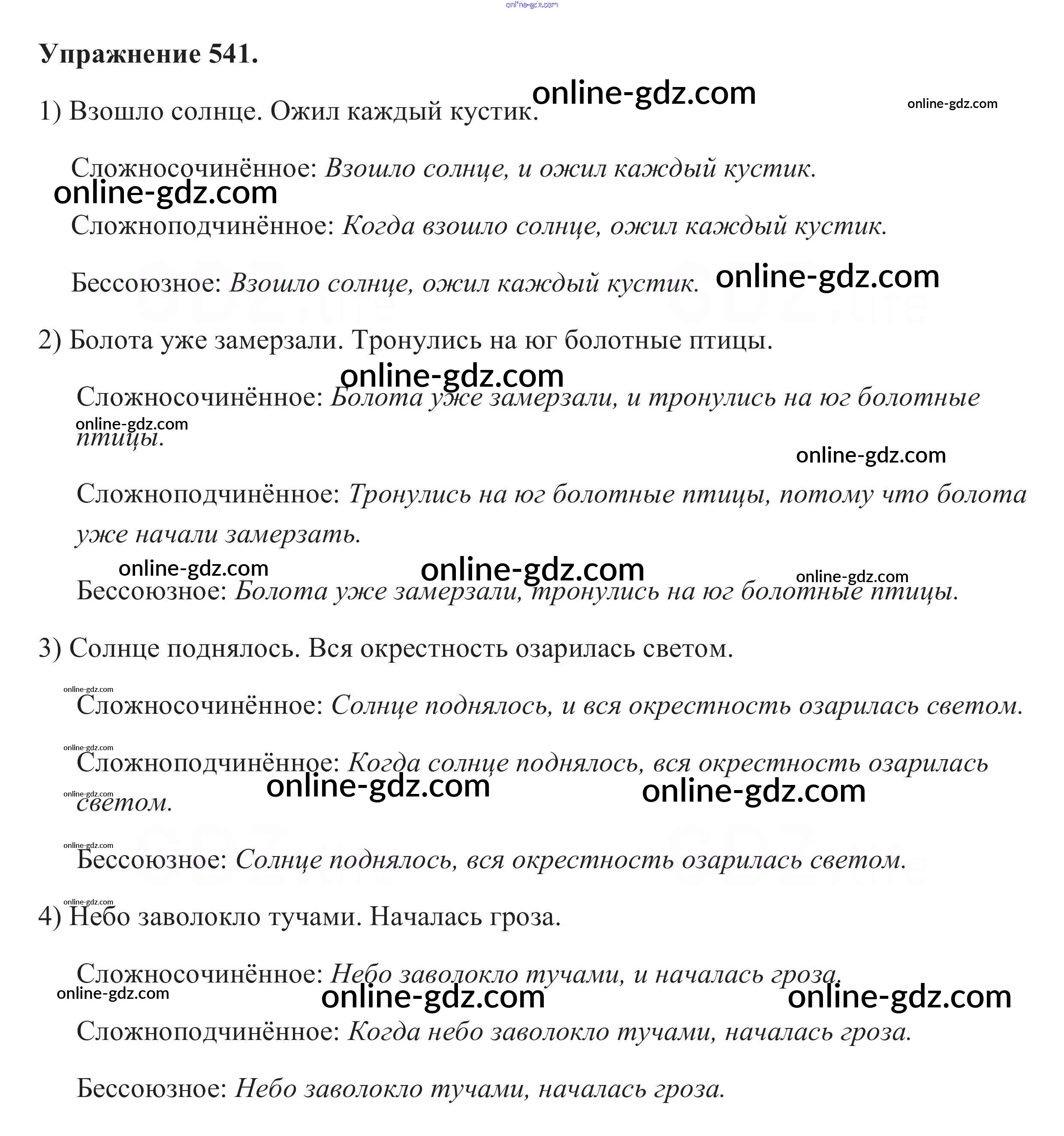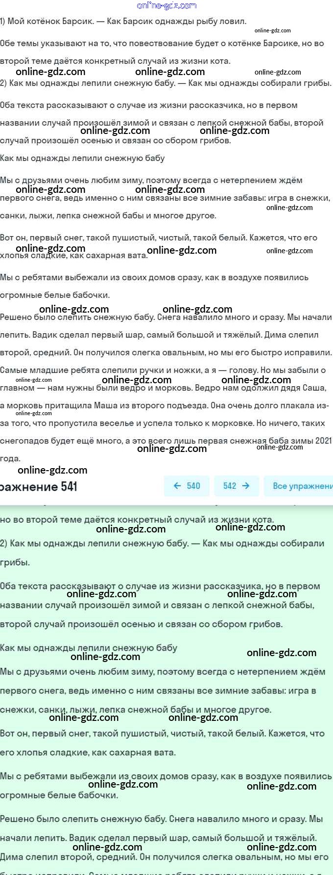 Готовые домашние задания по Русскому языку за 5 класс Учебник Разумовская, Львова 2014 - Упражнения 541
