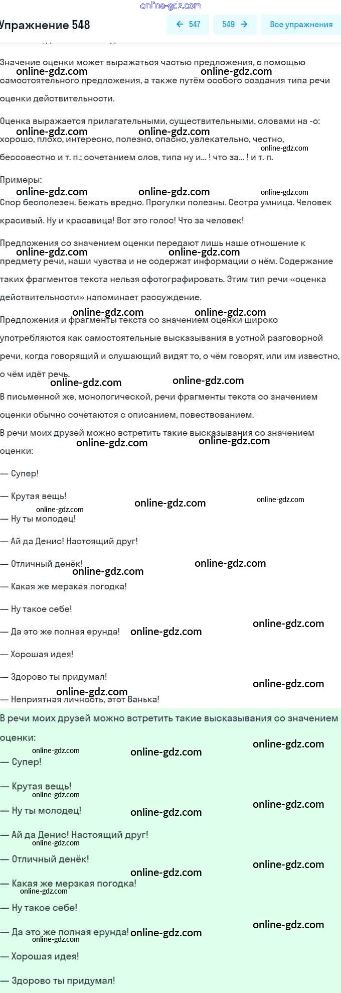 Готовые домашние задания по Русскому языку за 5 класс Учебник Разумовская, Львова 2014 - Упражнения 548