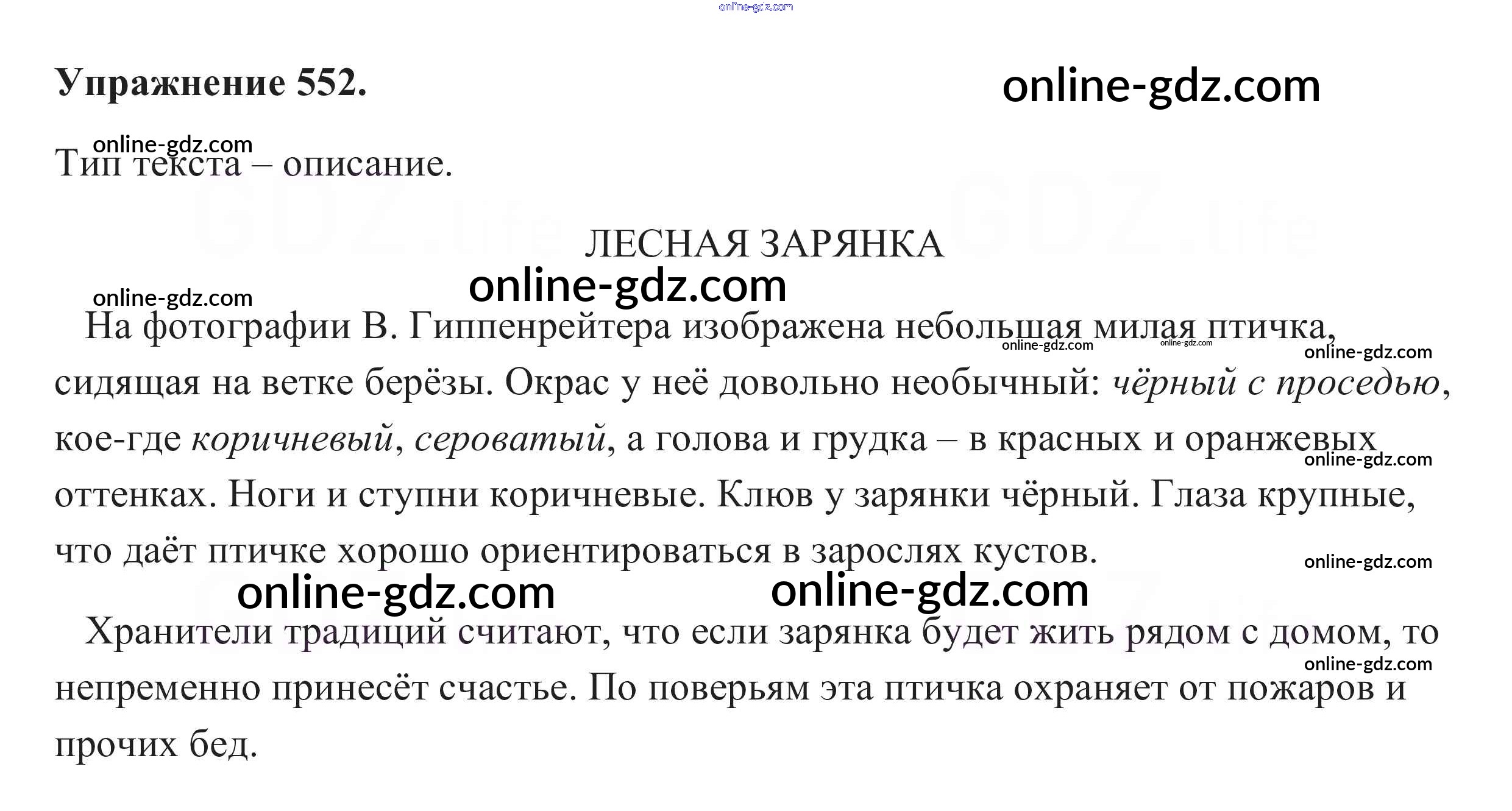 Готовые домашние задания по Русскому языку за 5 класс Учебник Разумовская, Львова 2014 - Упражнения 552