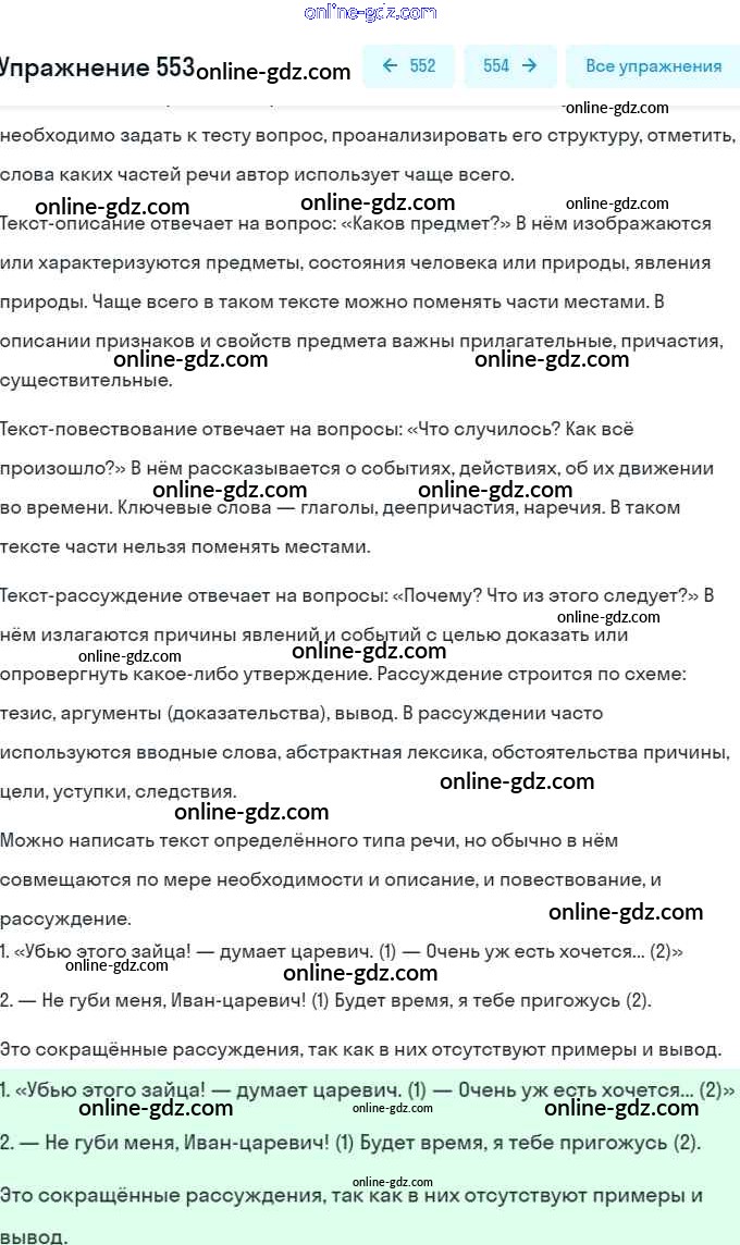 Готовые домашние задания по Русскому языку за 5 класс Учебник Разумовская, Львова 2014 - Упражнения 553