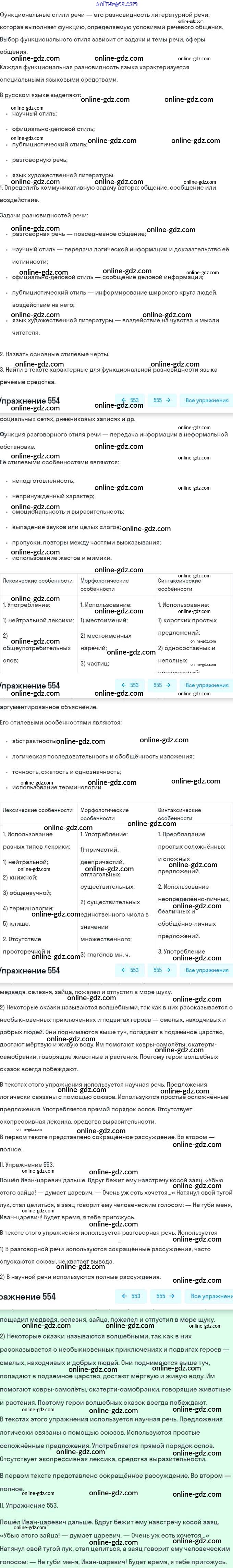 Готовые домашние задания по Русскому языку за 5 класс Учебник Разумовская, Львова 2014 - Упражнения 554