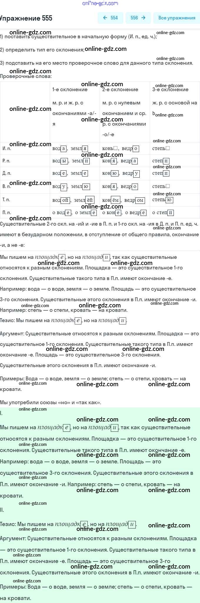 Готовые домашние задания по Русскому языку за 5 класс Учебник Разумовская, Львова 2014 - Упражнения 555