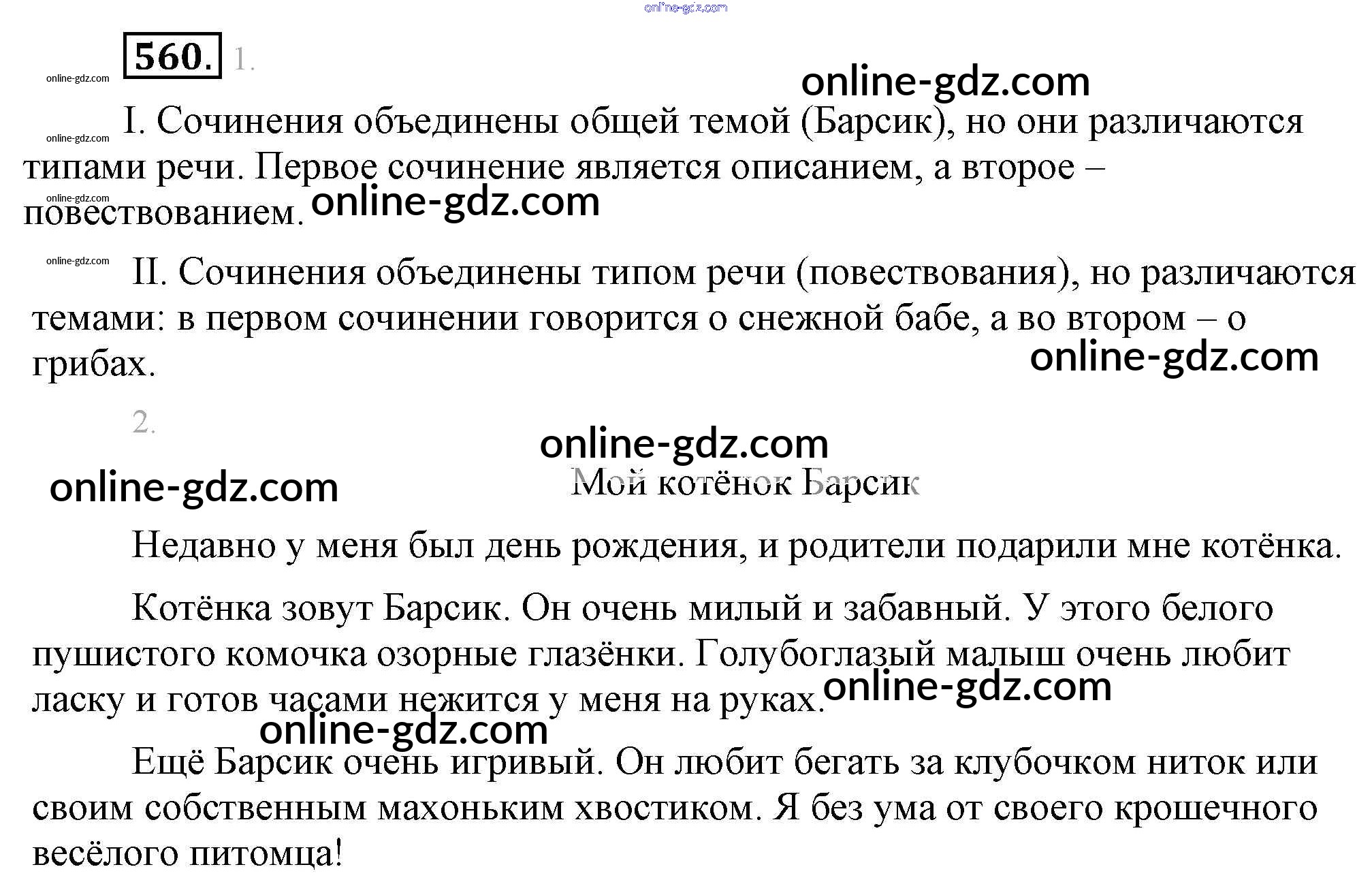 Готовые домашние задания по Русскому языку за 5 класс Учебник Разумовская, Львова 2014 - Упражнения 560