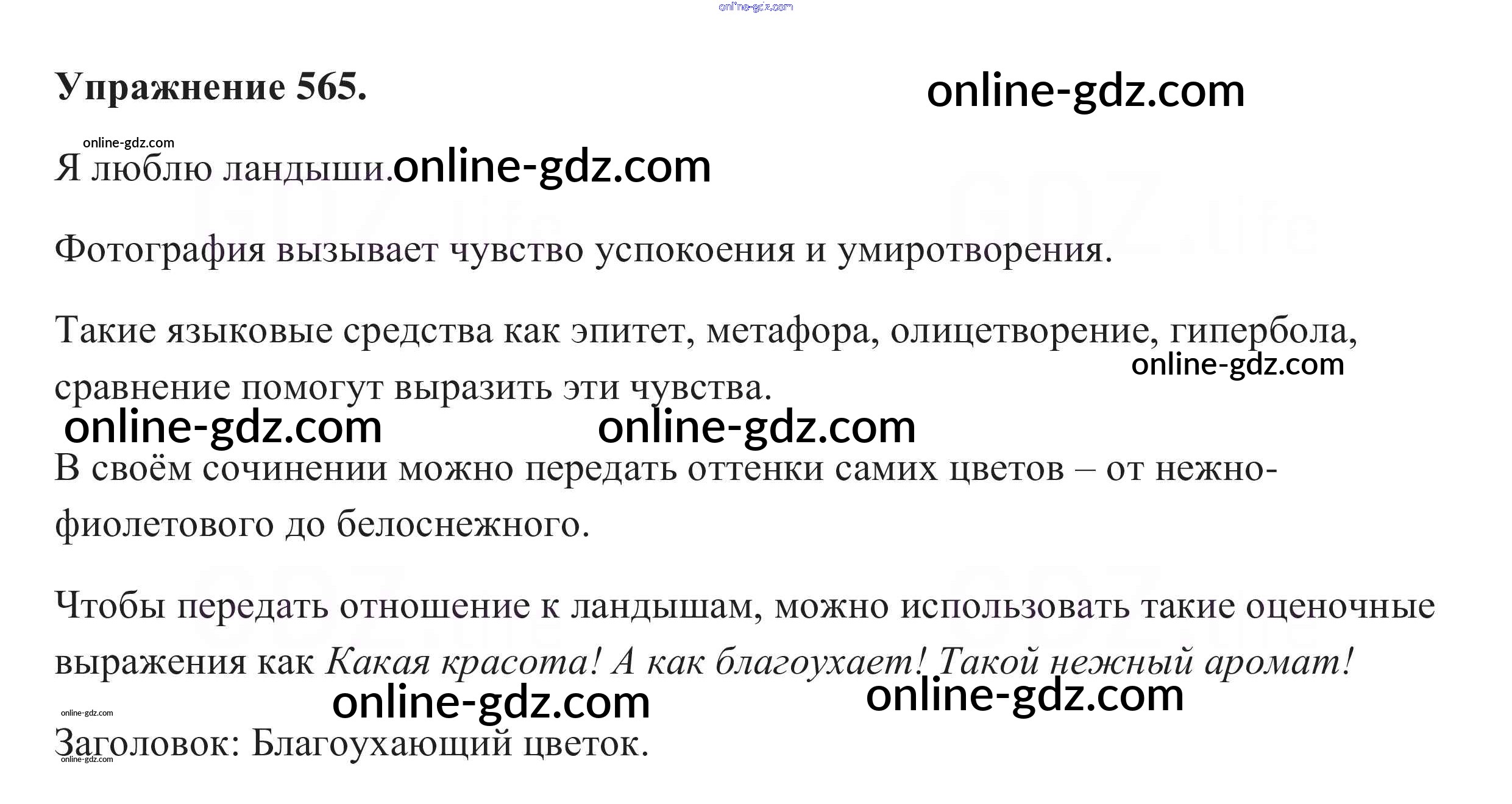 Готовые домашние задания по Русскому языку за 5 класс Учебник Разумовская, Львова 2014 - Упражнения 565