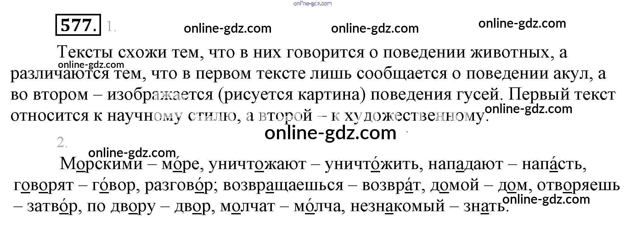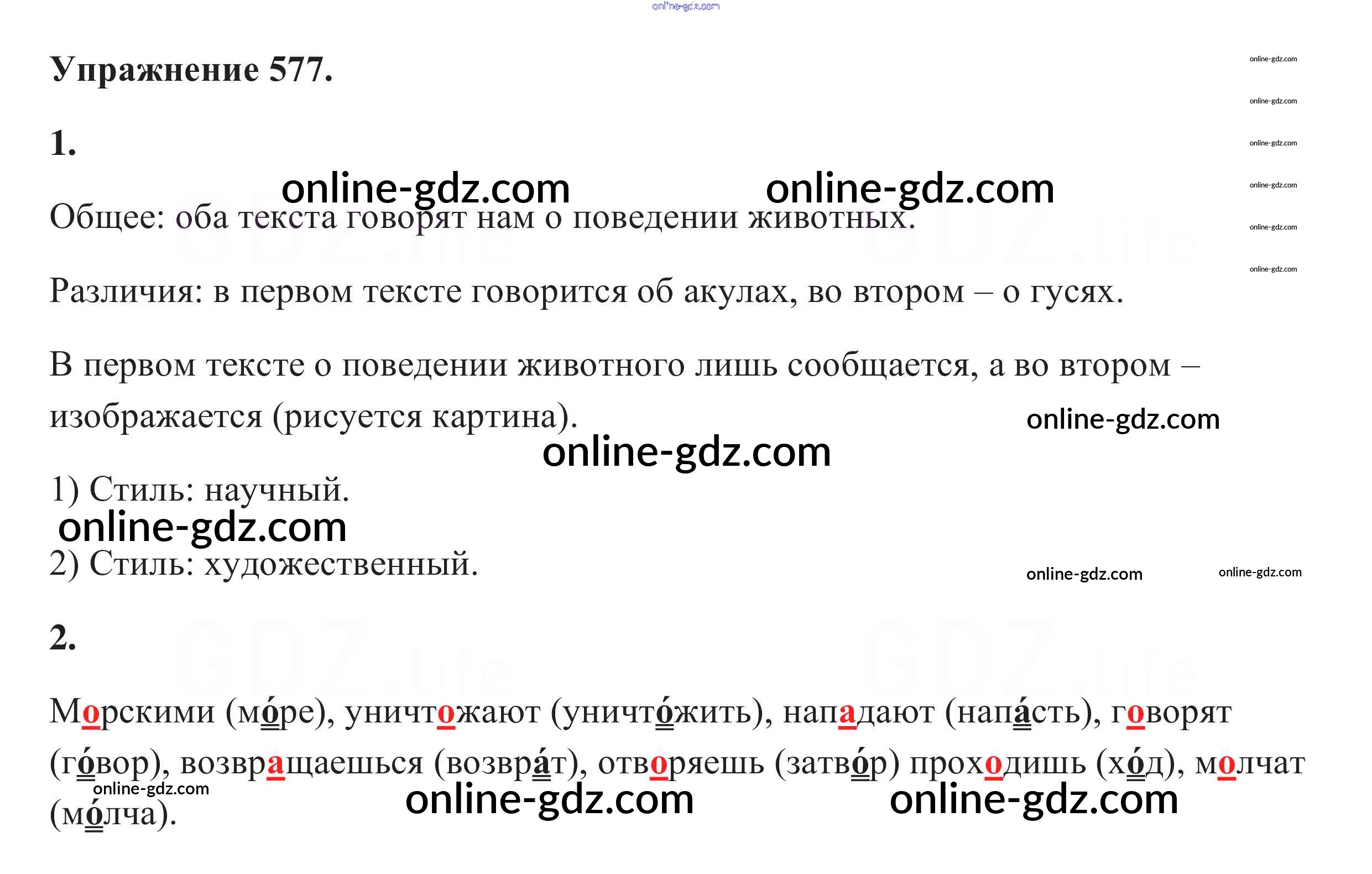 Готовые домашние задания по Русскому языку за 5 класс Учебник Разумовская, Львова 2014 - Упражнения 577