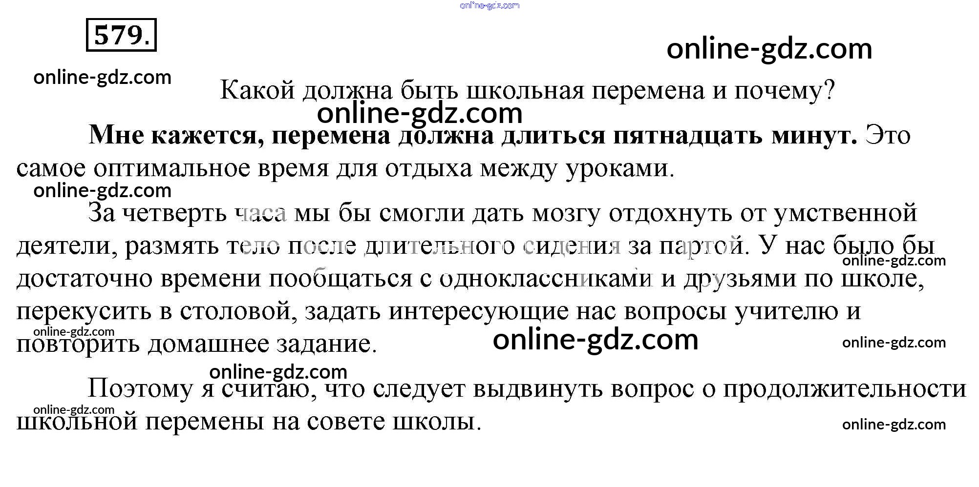 Готовые домашние задания по Русскому языку за 5 класс Учебник Разумовская, Львова 2014 - Упражнения 579