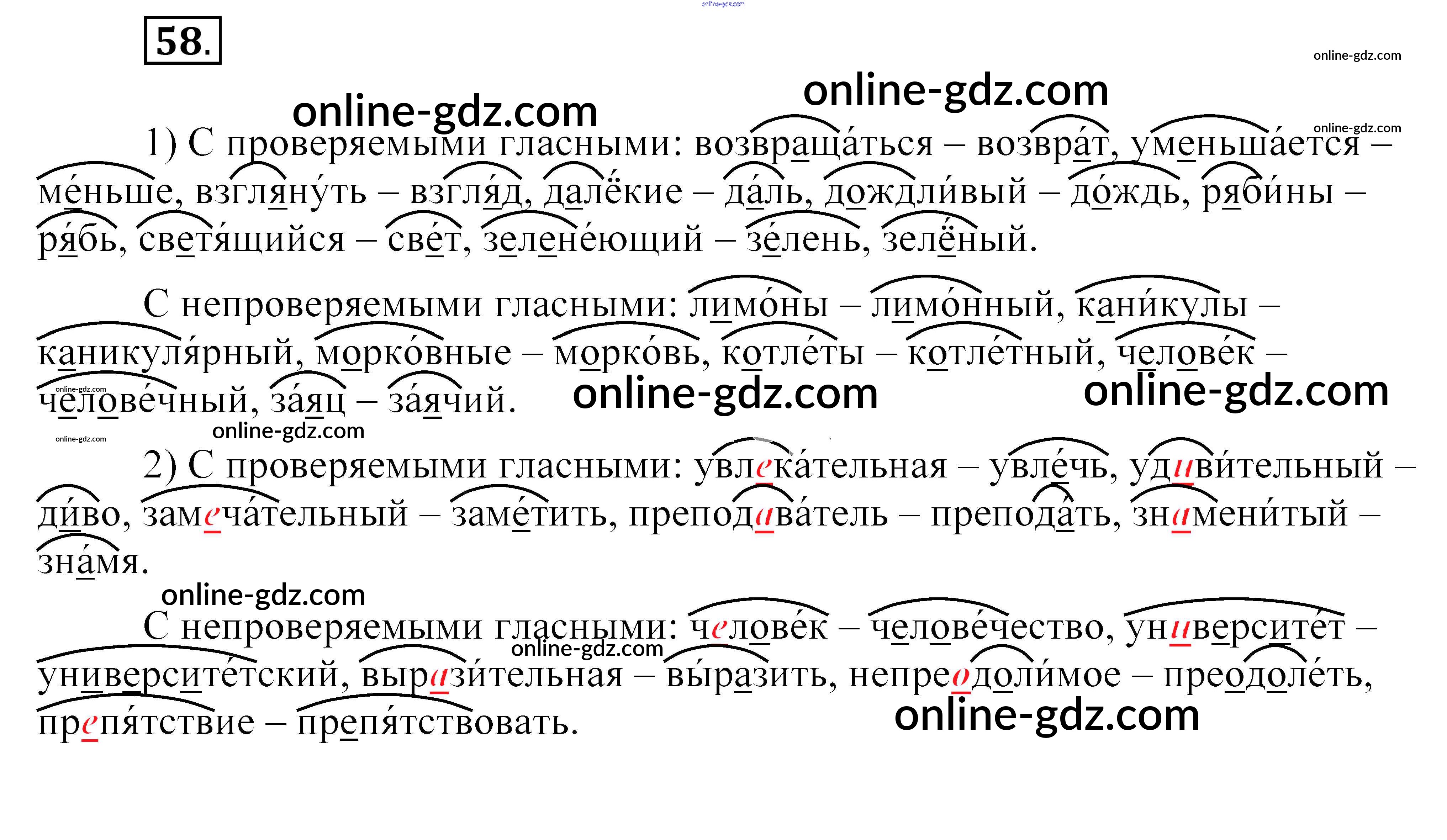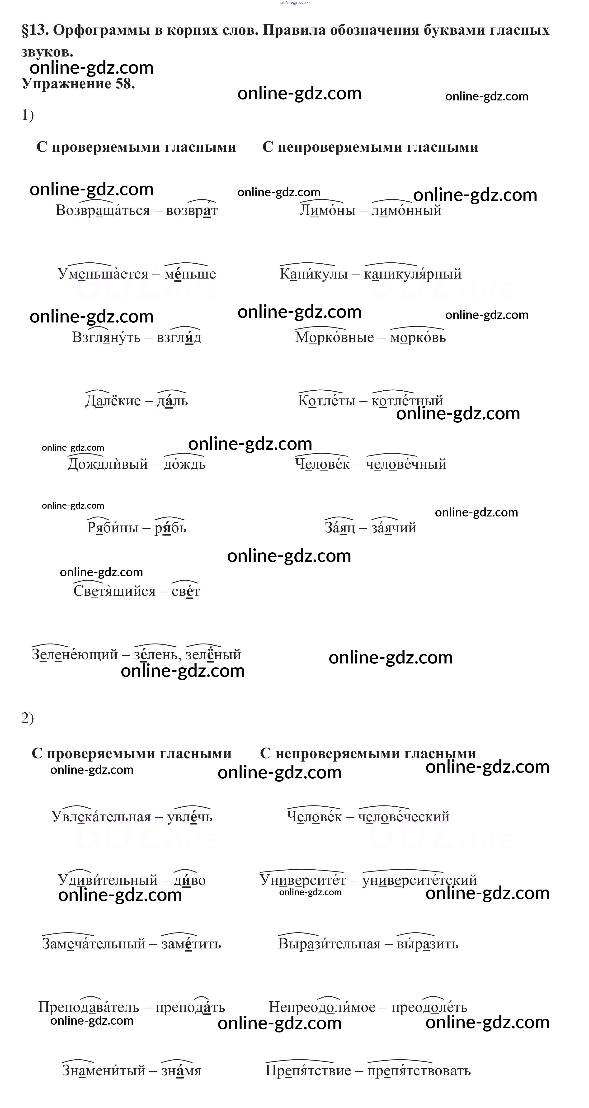 Готовые домашние задания по Русскому языку за 5 класс Учебник Разумовская, Львова 2014 - Упражнения 58