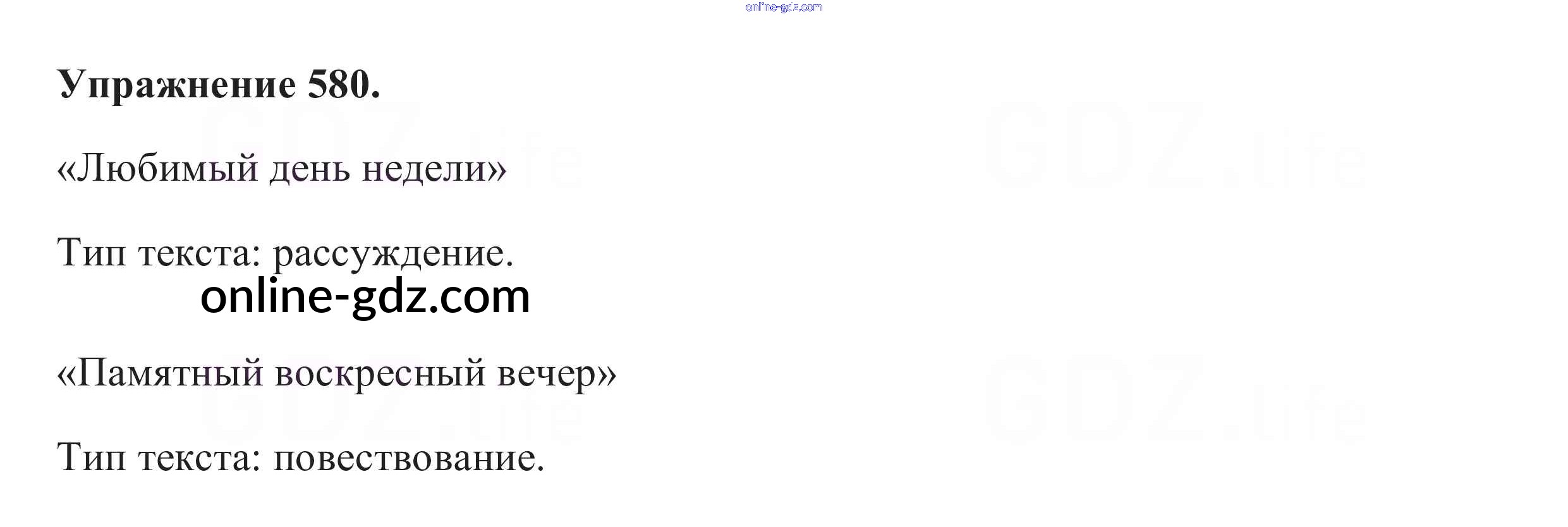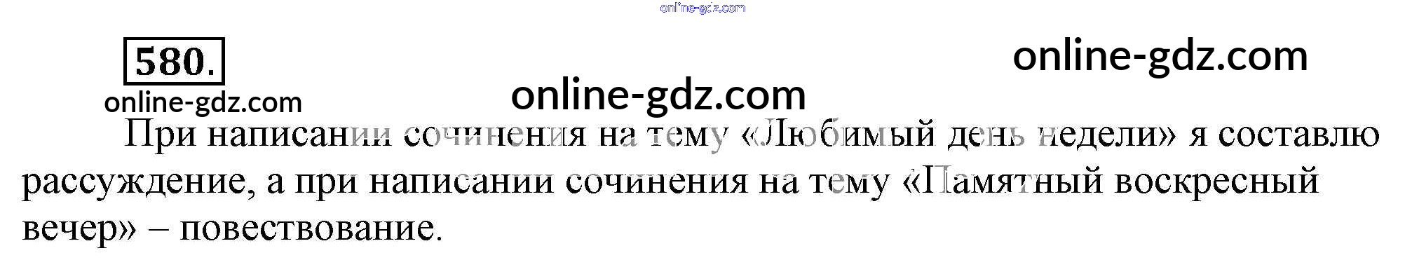 Готовые домашние задания по Русскому языку за 5 класс Учебник Разумовская, Львова 2014 - Упражнения 580