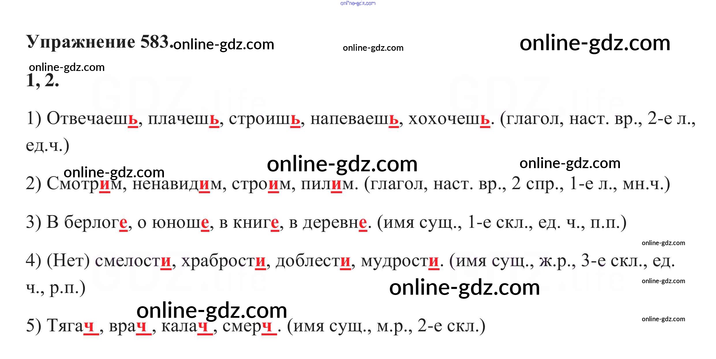 Готовые домашние задания по Русскому языку за 5 класс Учебник Разумовская, Львова 2014 - Упражнения 583