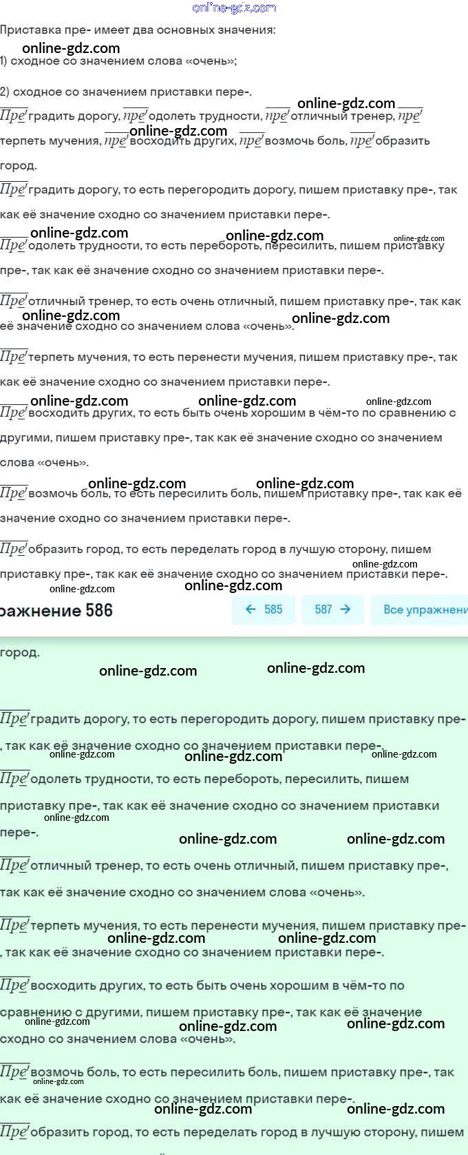 Готовые домашние задания по Русскому языку за 5 класс Учебник Разумовская, Львова 2014 - Упражнения 586