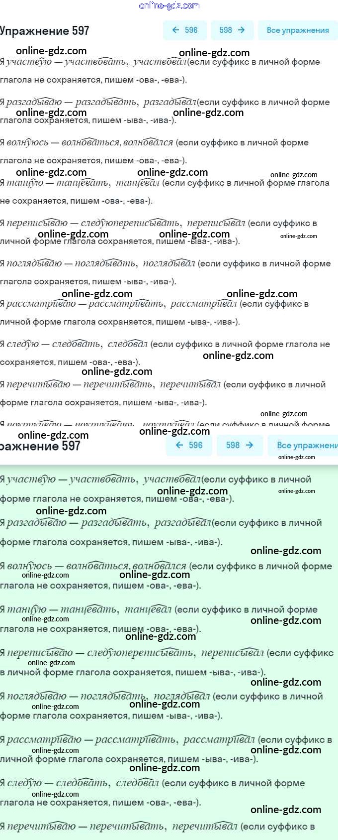 Готовые домашние задания по Русскому языку за 5 класс Учебник Разумовская, Львова 2014 - Упражнения 597