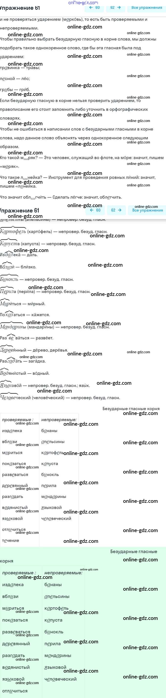 Готовые домашние задания по Русскому языку за 5 класс Учебник Разумовская, Львова 2014 - Упражнения 61
