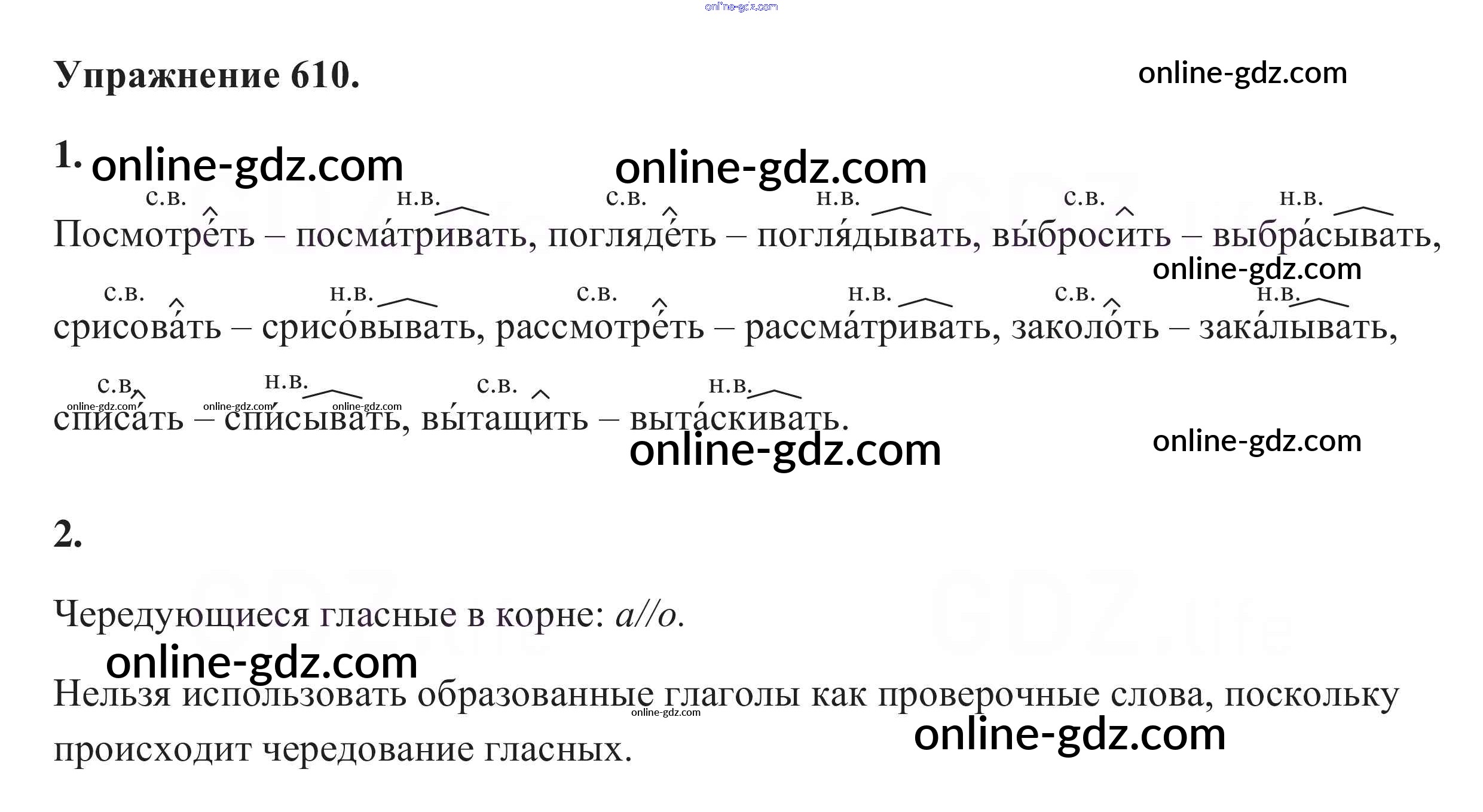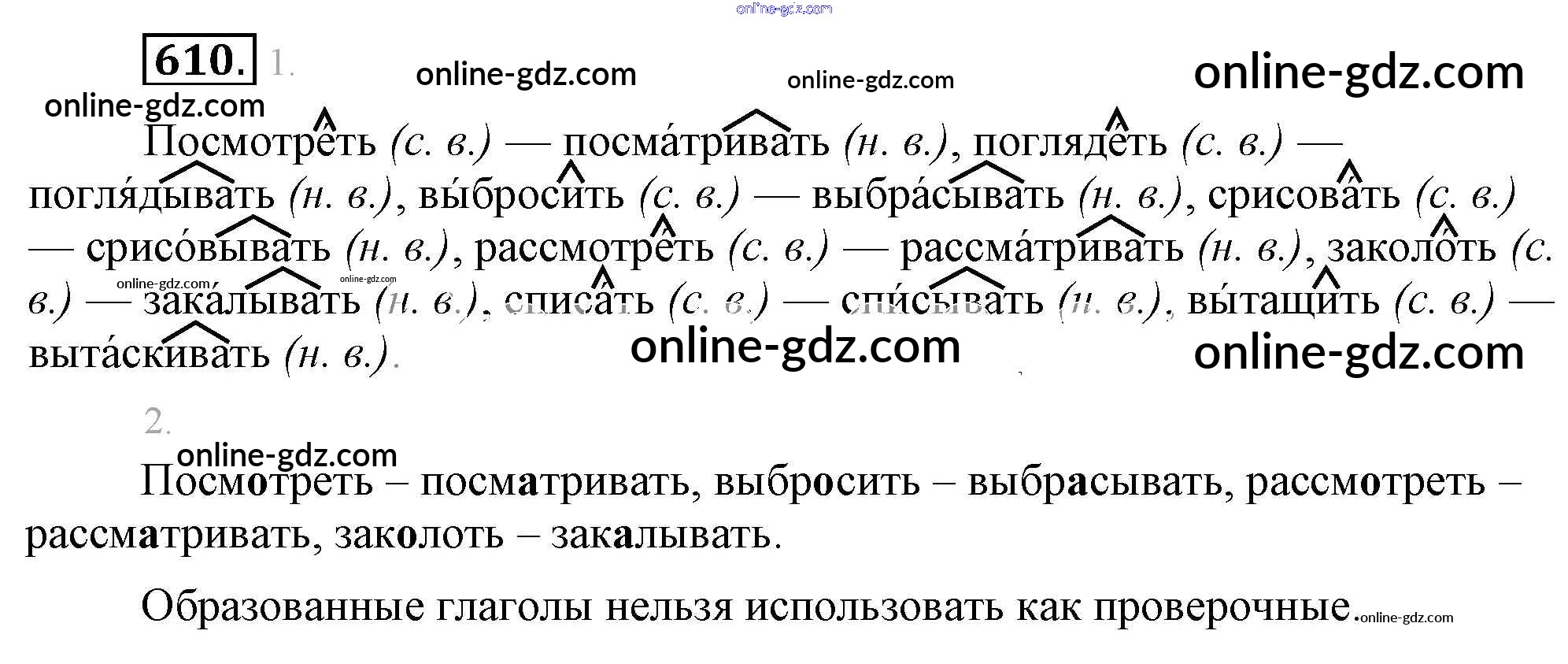 Готовые домашние задания по Русскому языку за 5 класс Учебник Разумовская, Львова 2014 - Упражнения 610