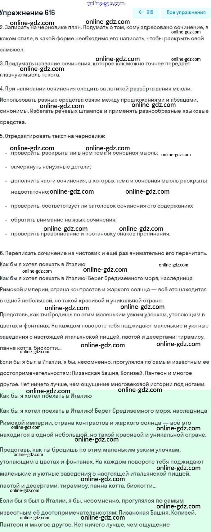 Готовые домашние задания по Русскому языку за 5 класс Учебник Разумовская, Львова 2014 - Упражнения 616