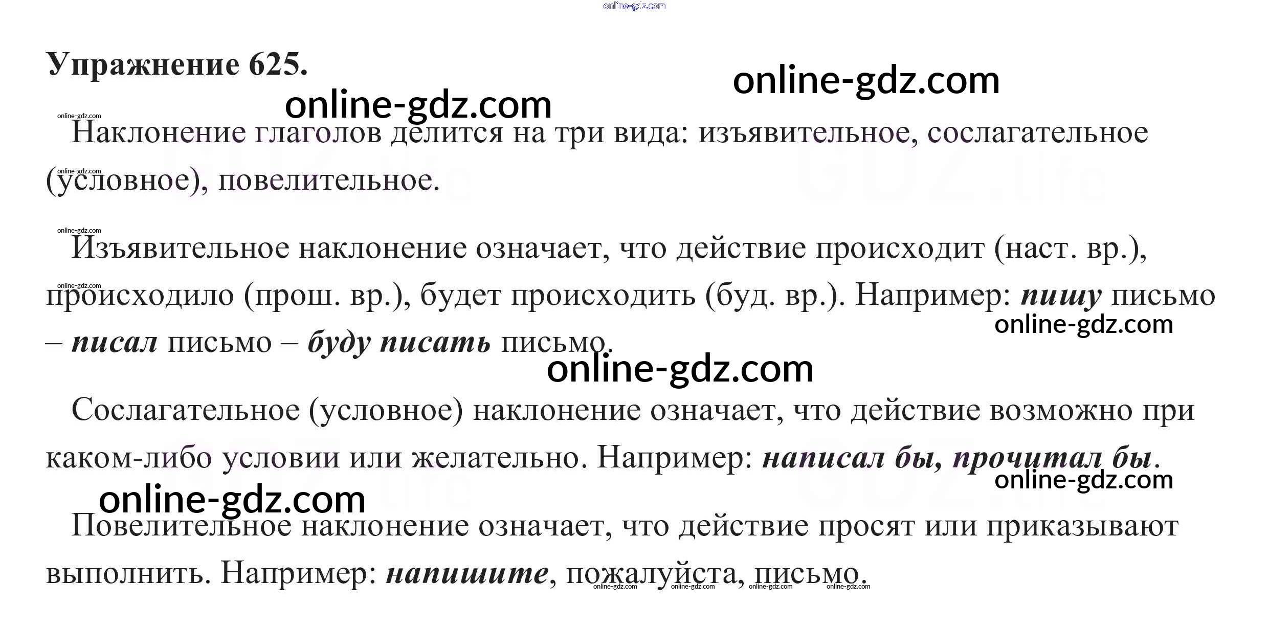 Готовые домашние задания по Русскому языку за 5 класс Учебник Разумовская, Львова 2014 - Упражнения 625
