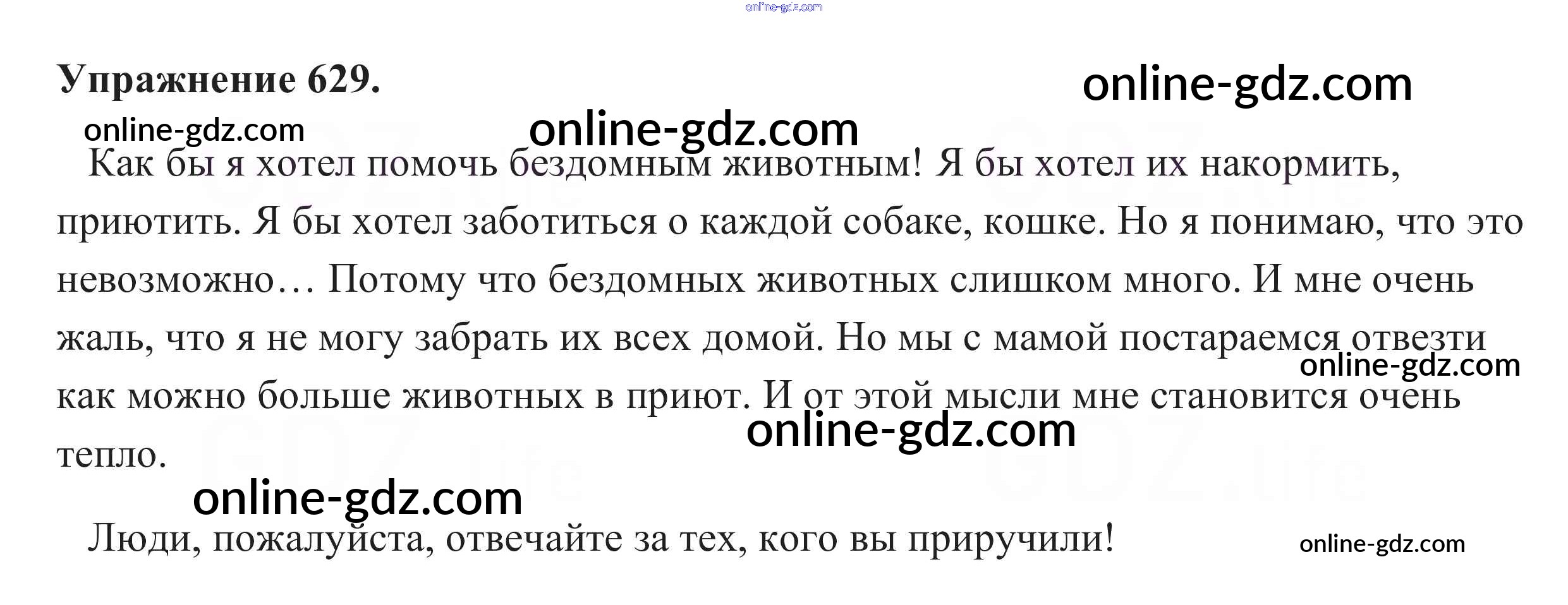 Готовые домашние задания по Русскому языку за 5 класс Учебник Разумовская, Львова 2014 - Упражнения 629