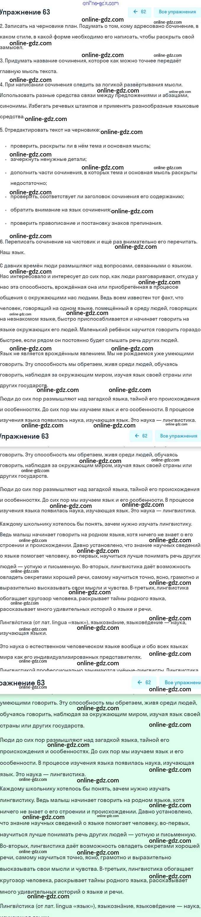 Готовые домашние задания по Русскому языку за 5 класс Учебник Разумовская, Львова 2014 - Упражнения 63