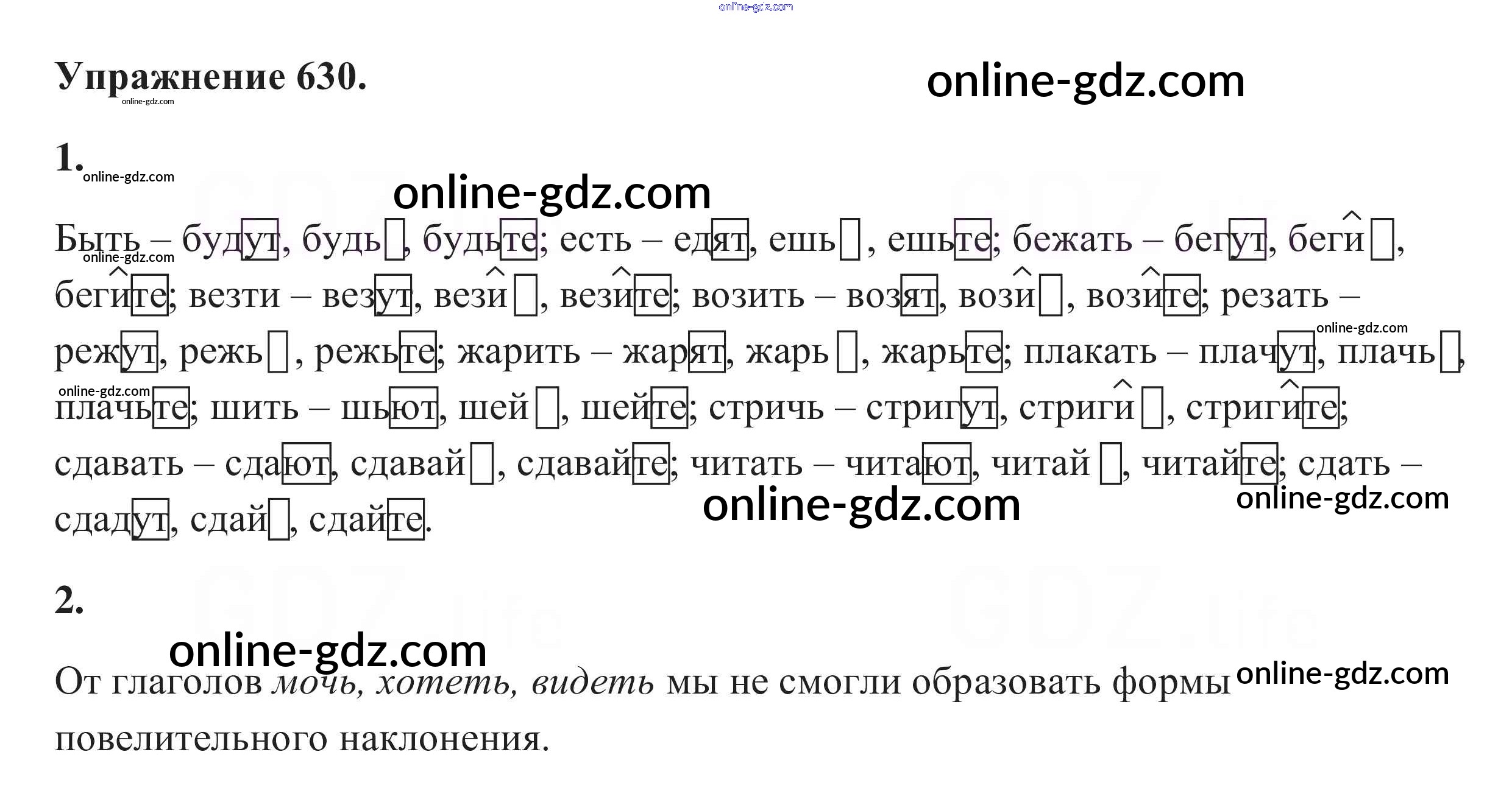 Готовые домашние задания по Русскому языку за 5 класс Учебник Разумовская, Львова 2014 - Упражнения 630