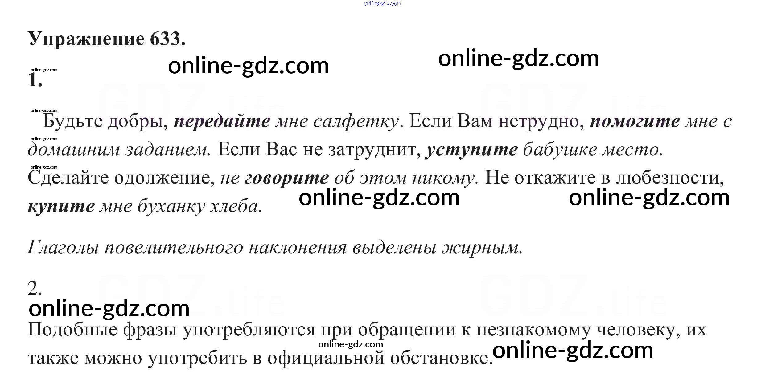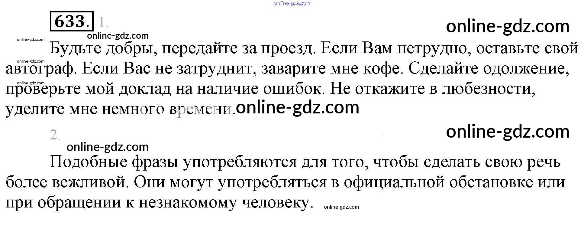 Готовые домашние задания по Русскому языку за 5 класс Учебник Разумовская, Львова 2014 - Упражнения 633