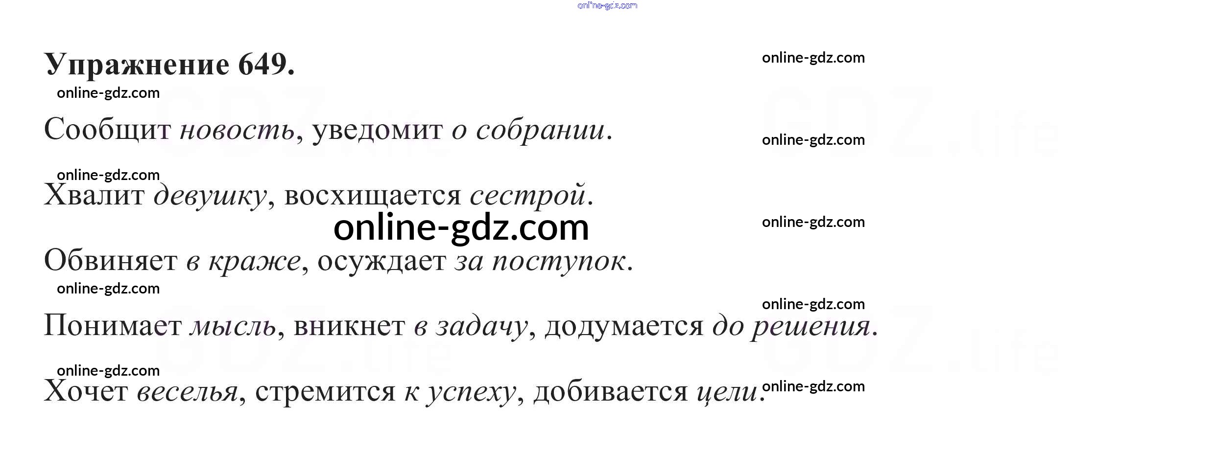 Готовые домашние задания по Русскому языку за 5 класс Учебник Разумовская, Львова 2014 - Упражнения 649