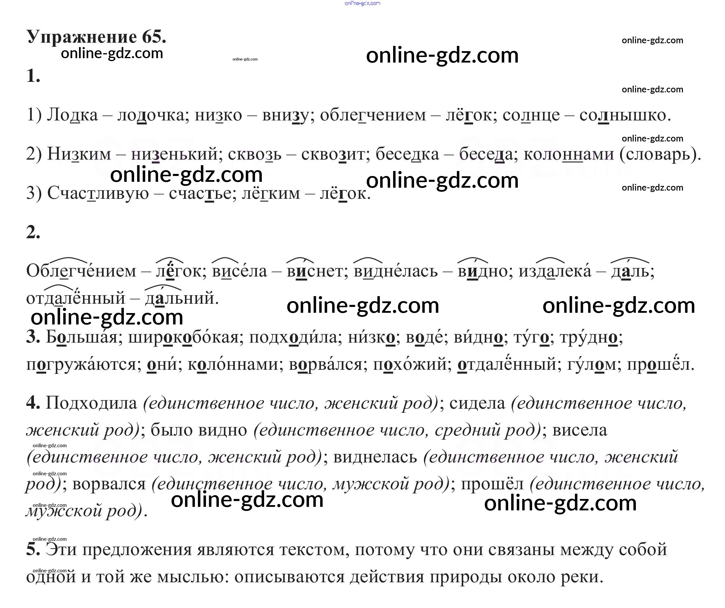 Готовые домашние задания по Русскому языку за 5 класс Учебник Разумовская, Львова 2014 - Упражнения 65