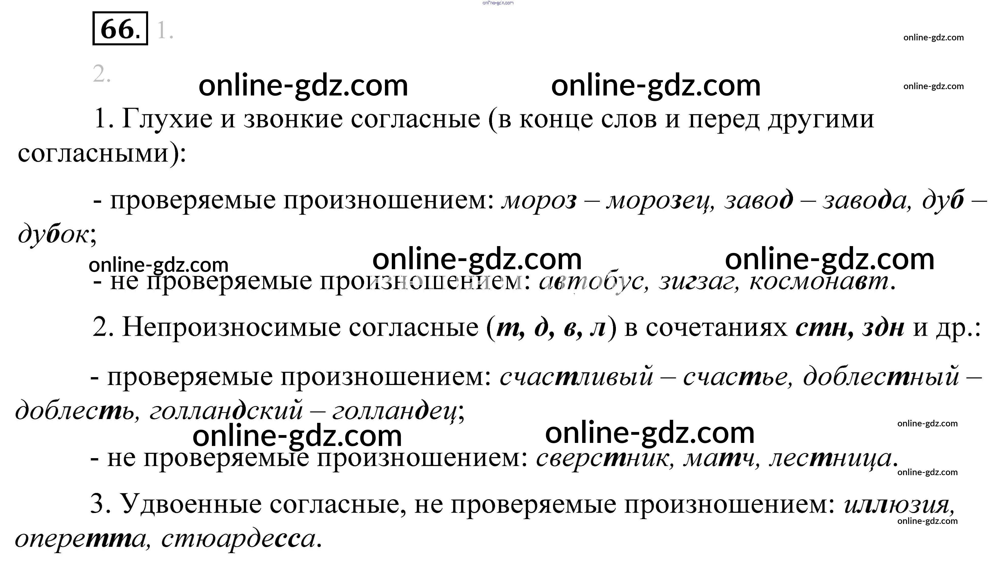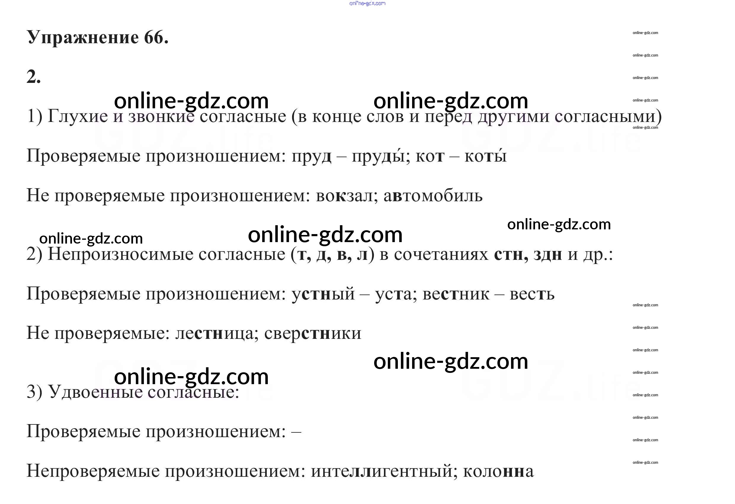 Готовые домашние задания по Русскому языку за 5 класс Учебник Разумовская, Львова 2014 - Упражнения 66