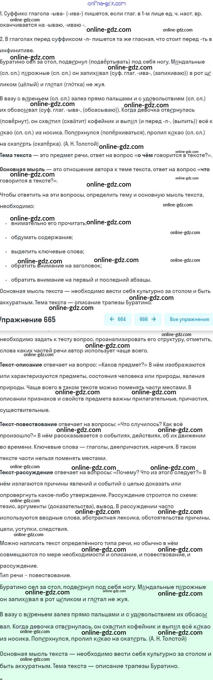 Готовые домашние задания по Русскому языку за 5 класс Учебник Разумовская, Львова 2014 - Упражнения 665
