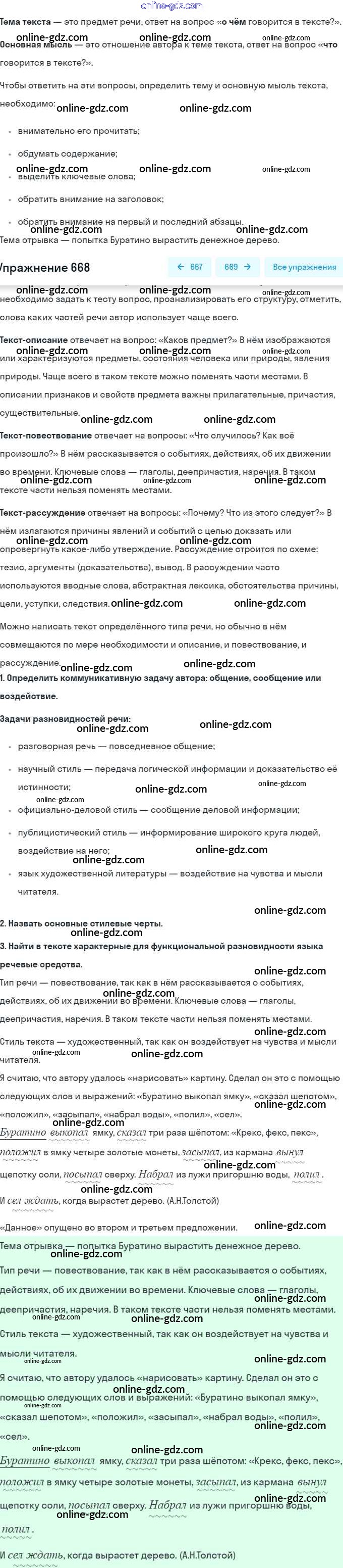 Готовые домашние задания по Русскому языку за 5 класс Учебник Разумовская, Львова 2014 - Упражнения 668