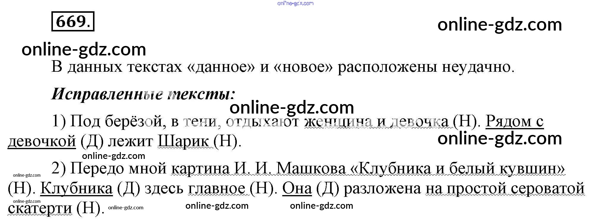 Готовые домашние задания по Русскому языку за 5 класс Учебник Разумовская, Львова 2014 - Упражнения 669