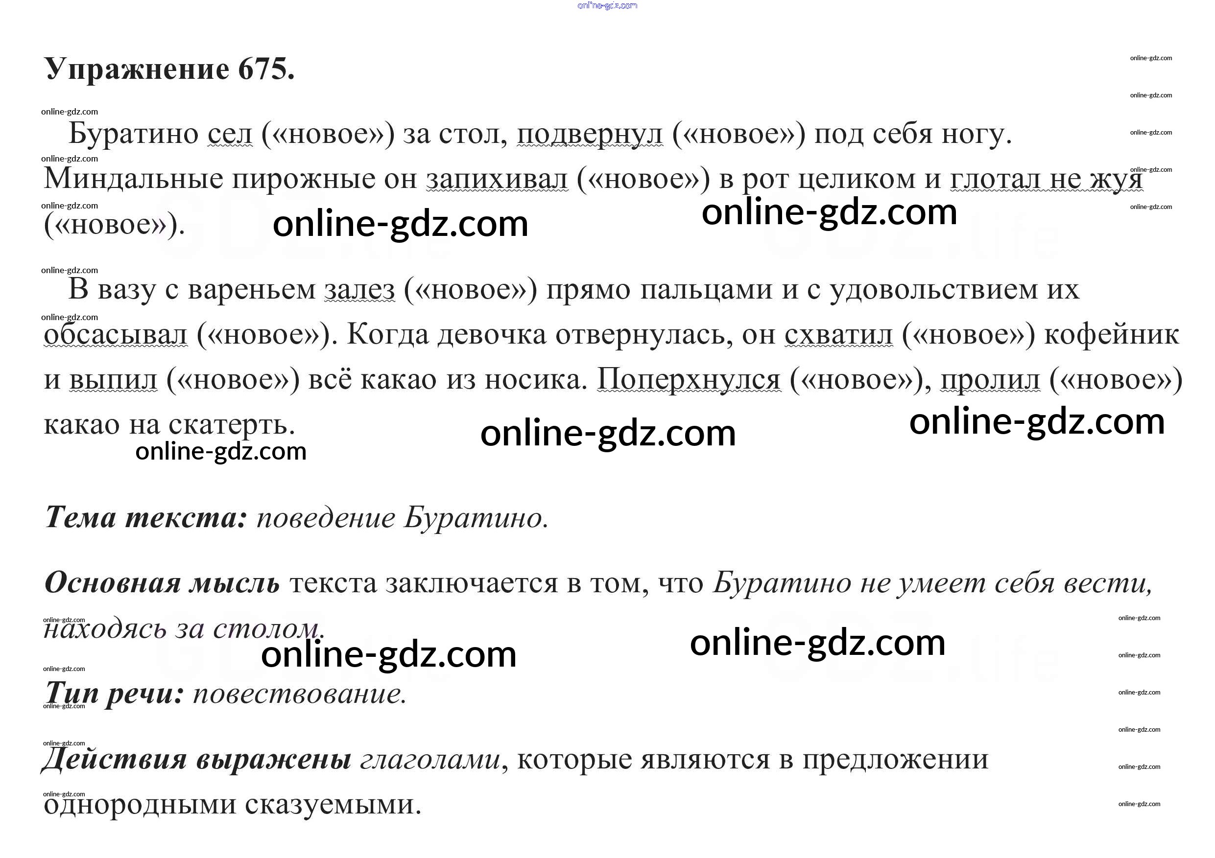 Готовые домашние задания по Русскому языку за 5 класс Учебник Разумовская, Львова 2014 - Упражнения 675